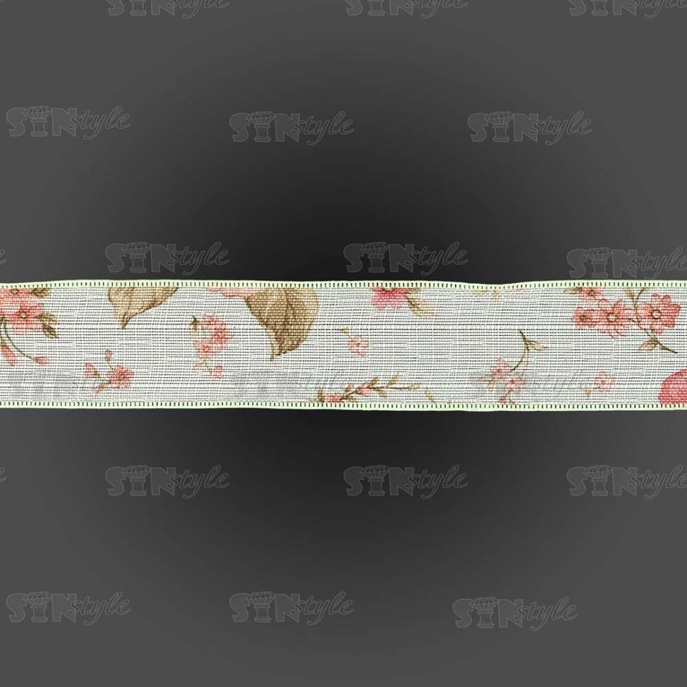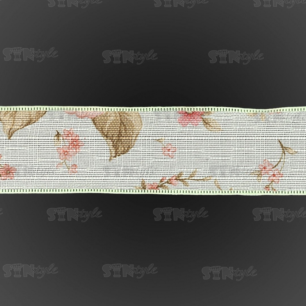 Декоративная лента с цветочным принтом, цвет мятный, ширина 40 мм, намотка 20 ярдов