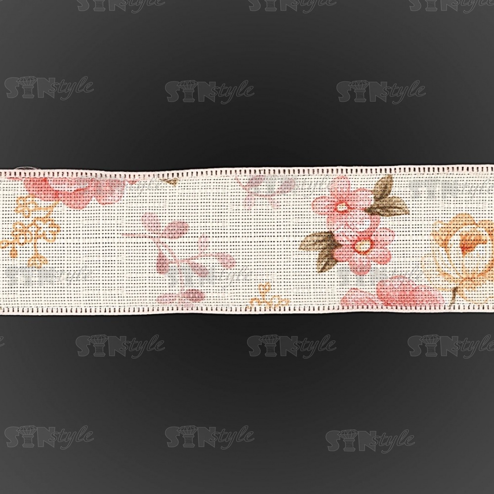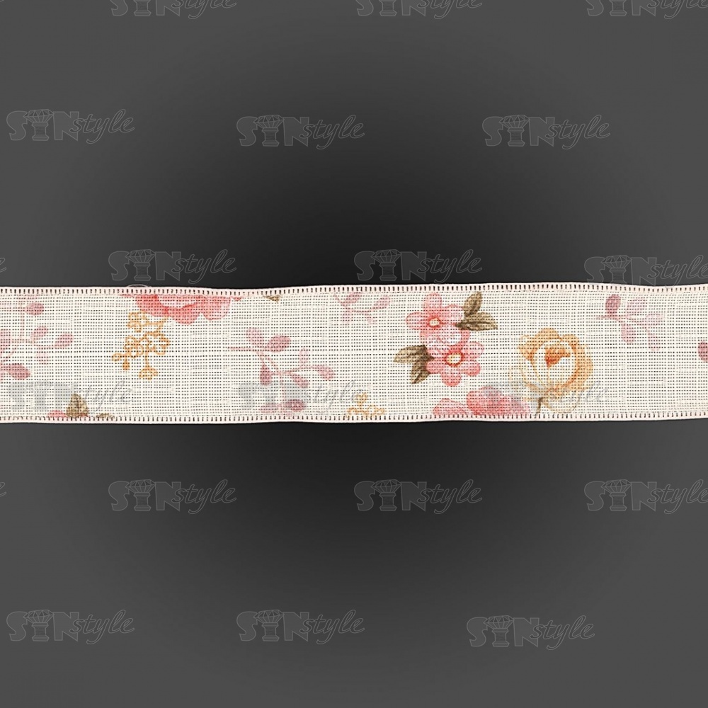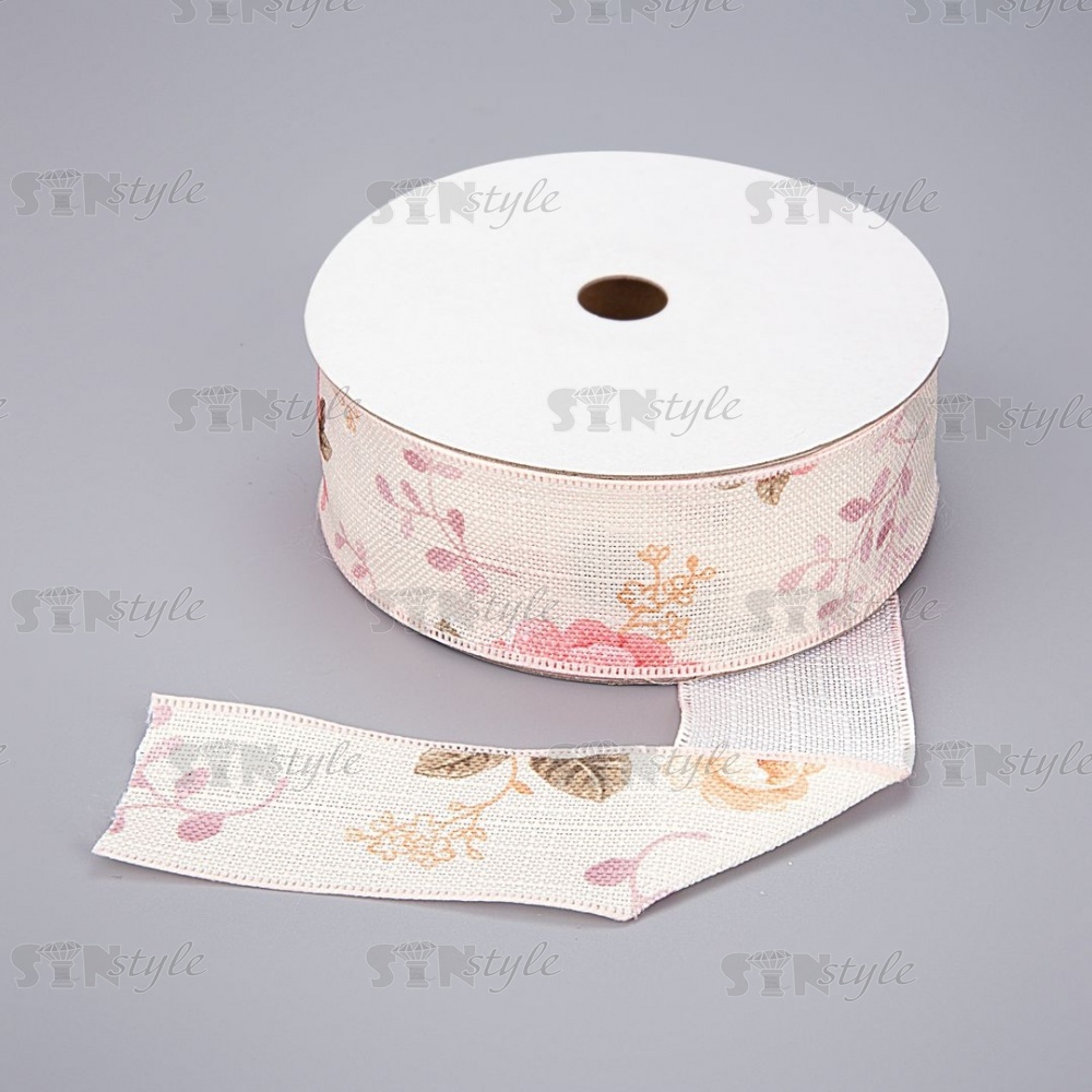 Декоративная лента с цветочным принтом, цвет бежевый, ширина 40 мм, намотка 20 ярдов