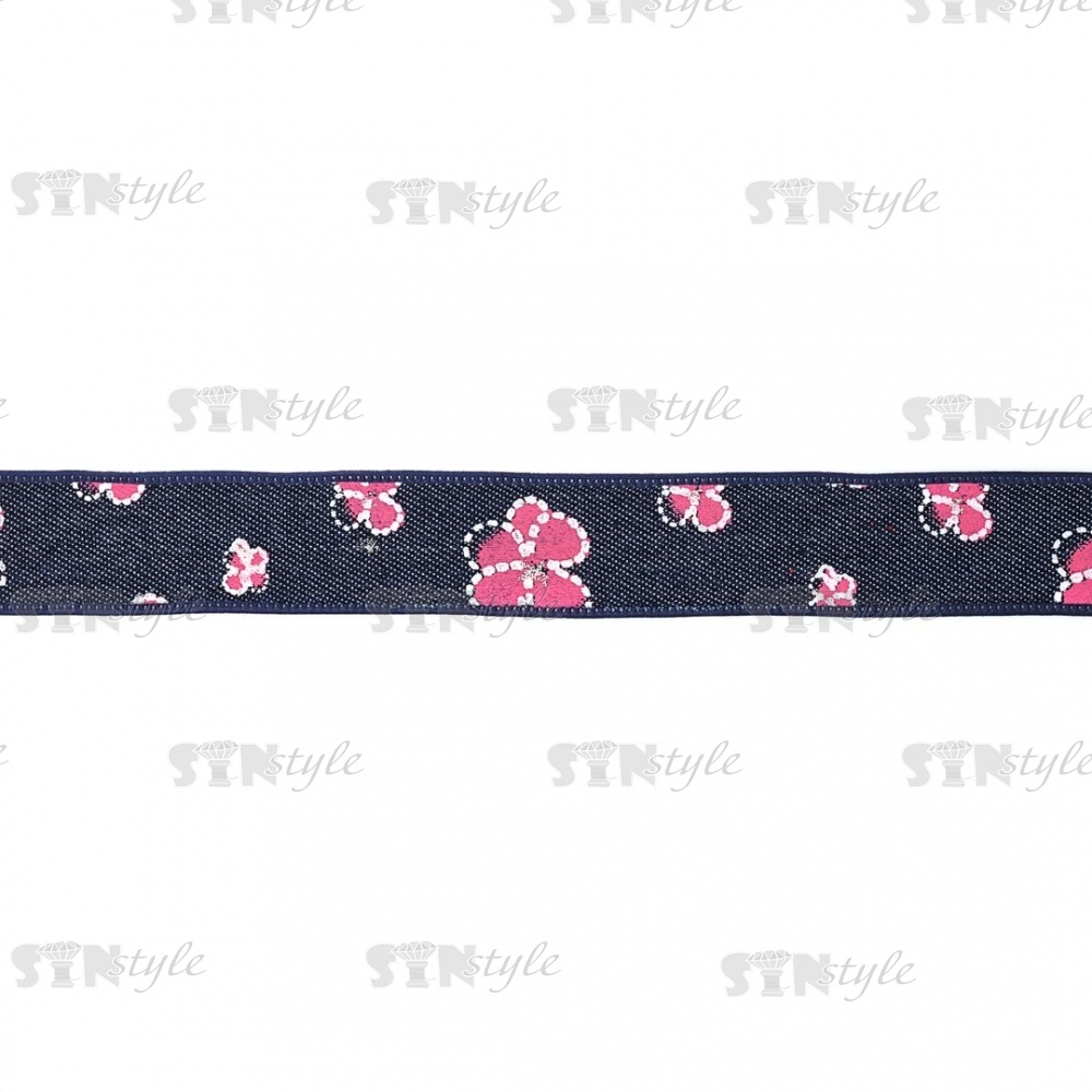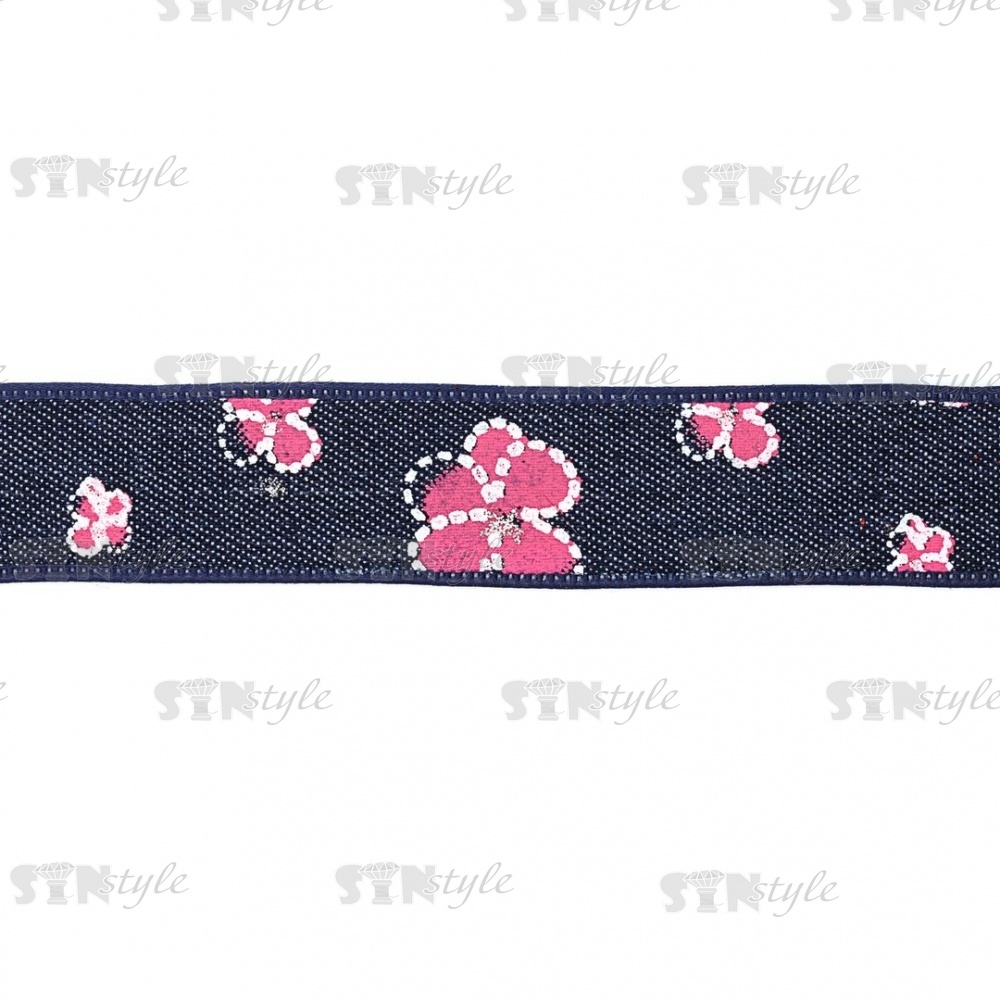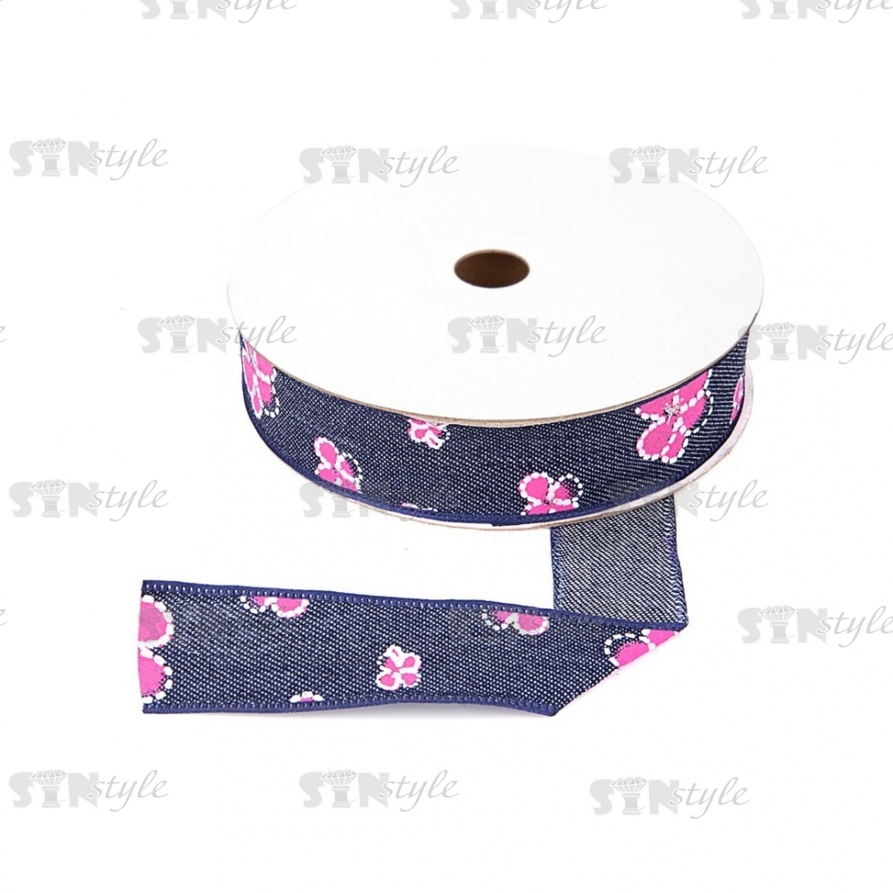 Джинсовая лента с цветочным принтом красного цвета, ширина 25 мм, намотка 20 ярдов