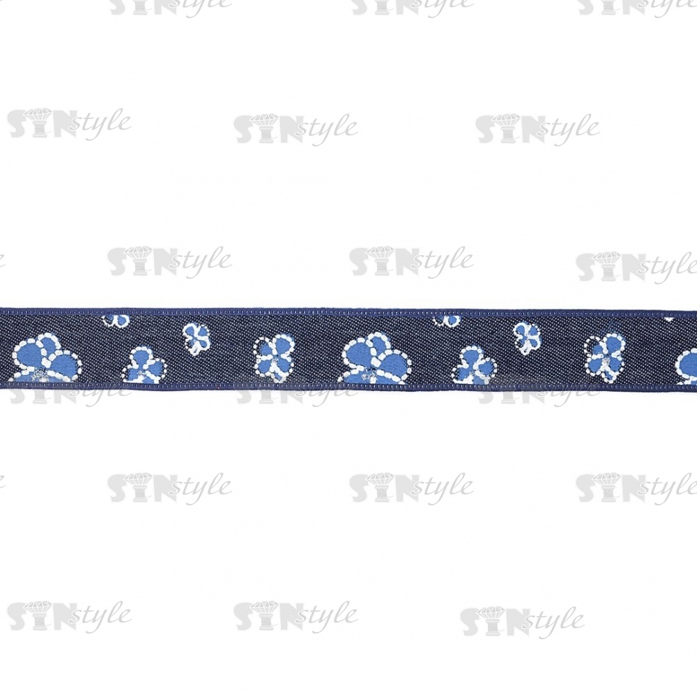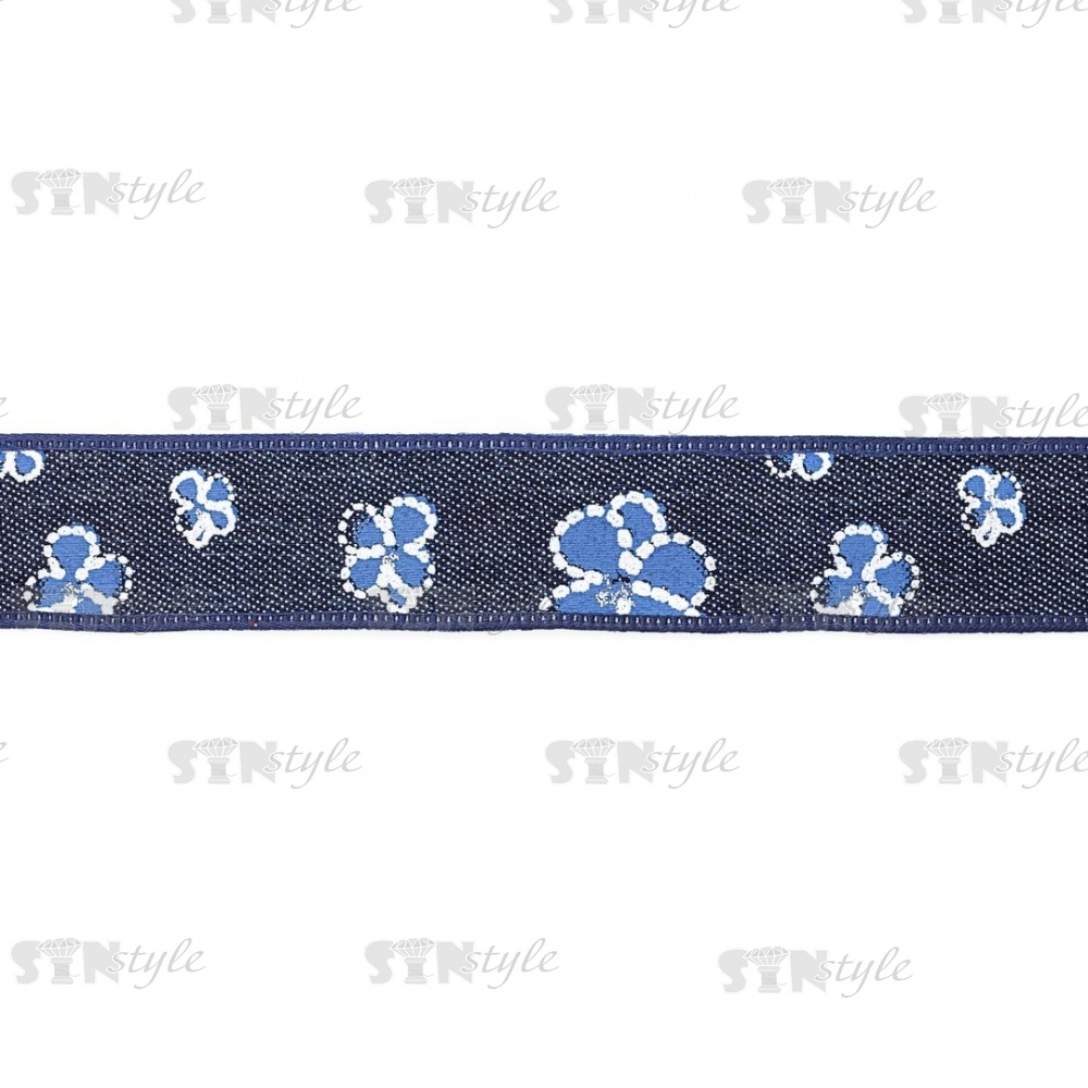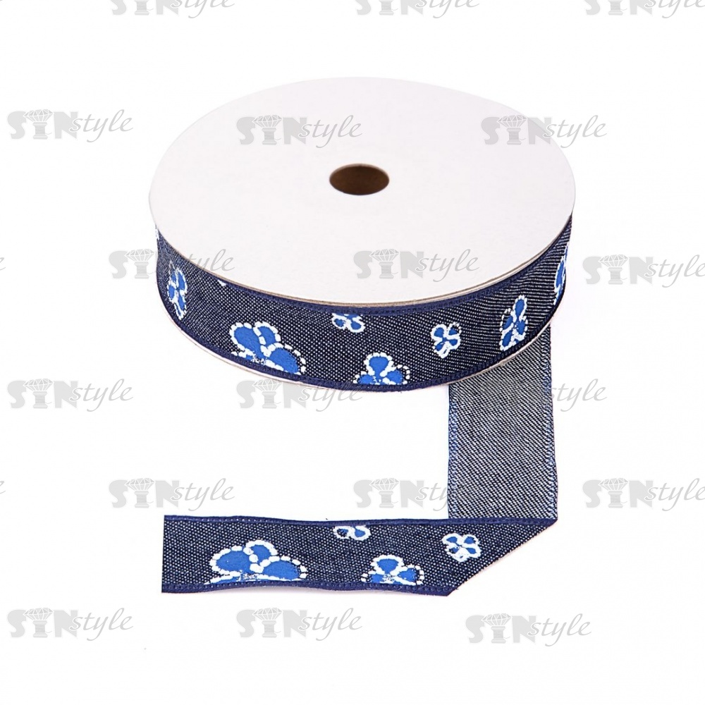 Джинсовая лента с цветочным принтом голубого цвета, ширина 25 мм, намотка 20 ярдов