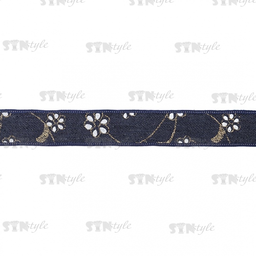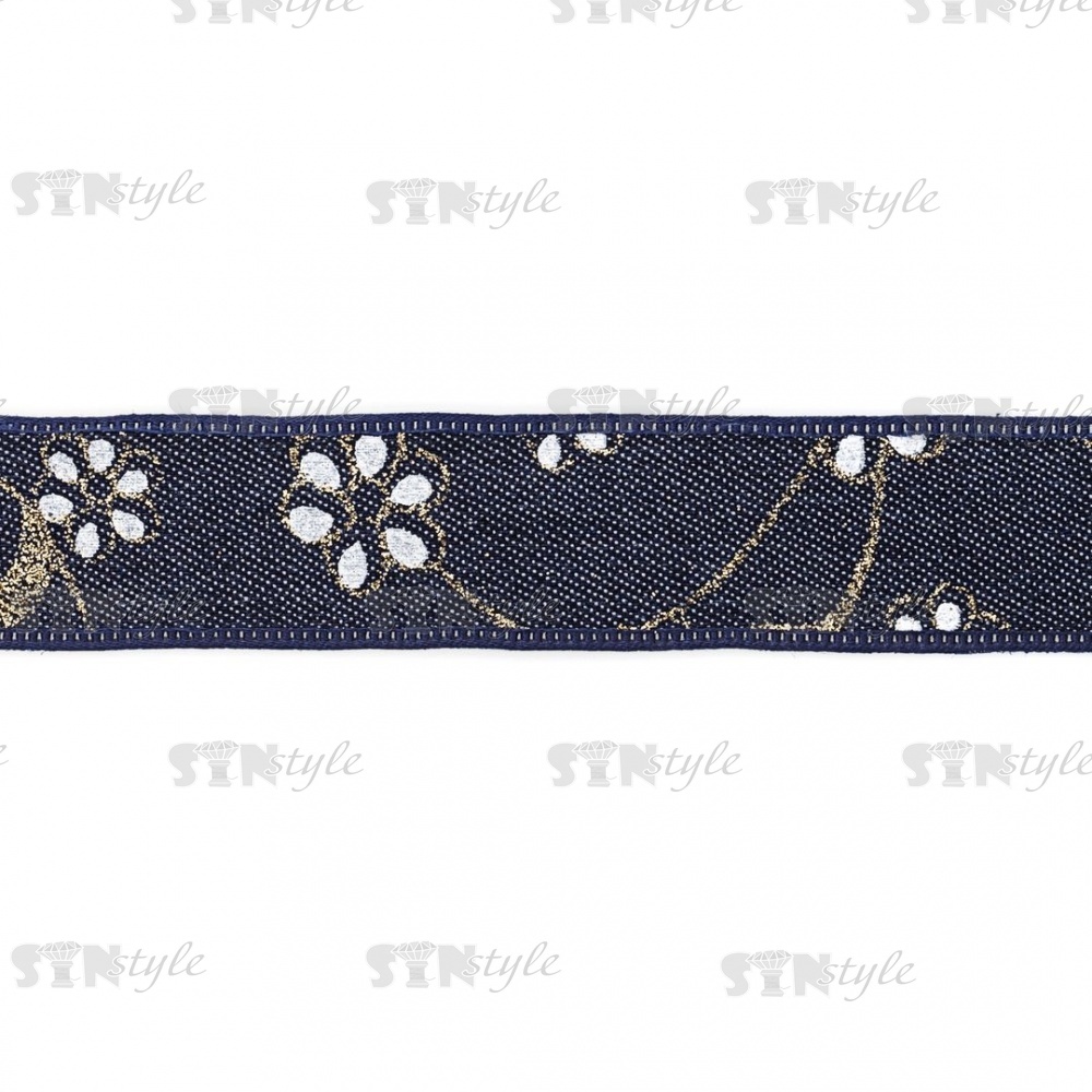 Джинсовая лента с цветочным принтом голубого цвета, ширина 25 мм, намотка 20 ярдов