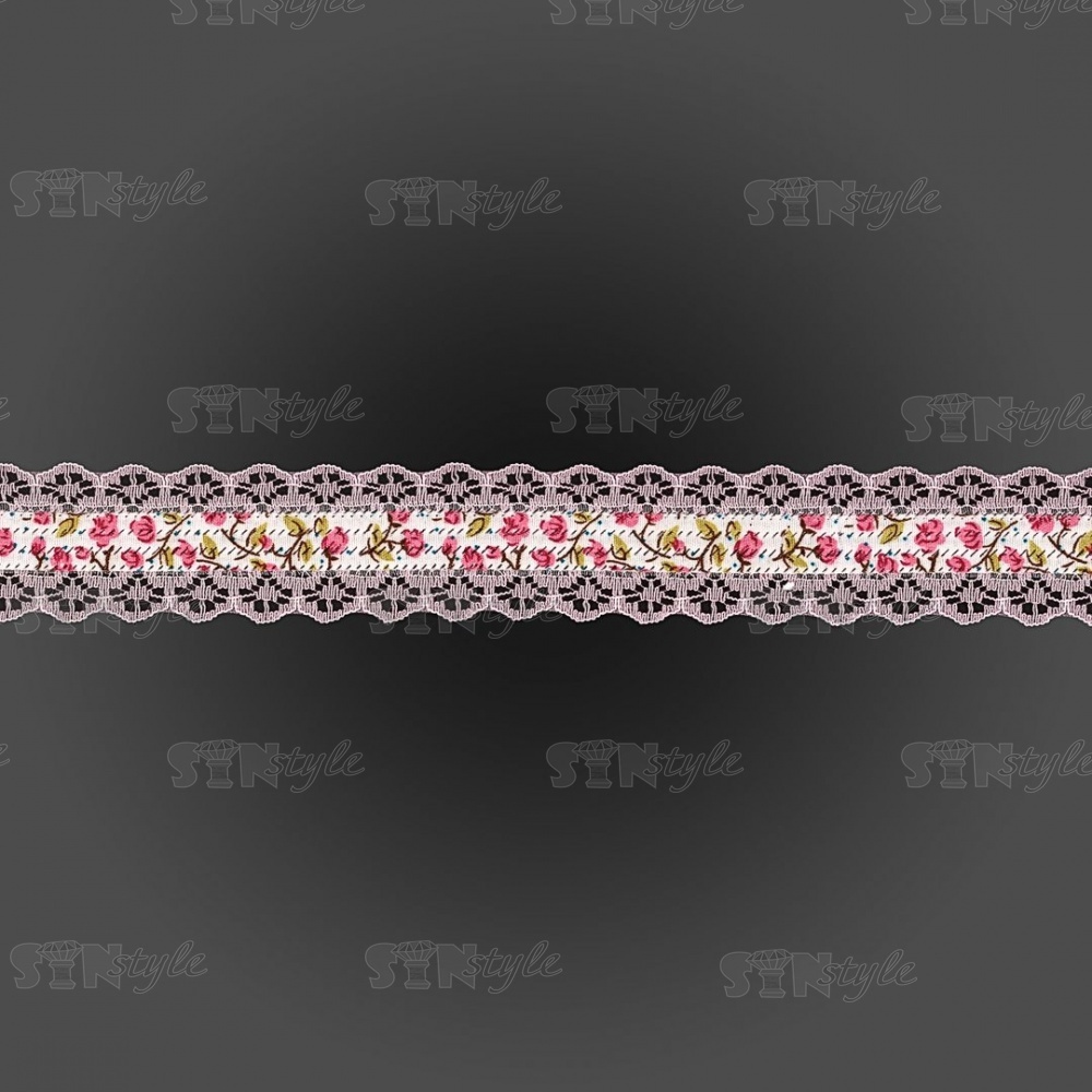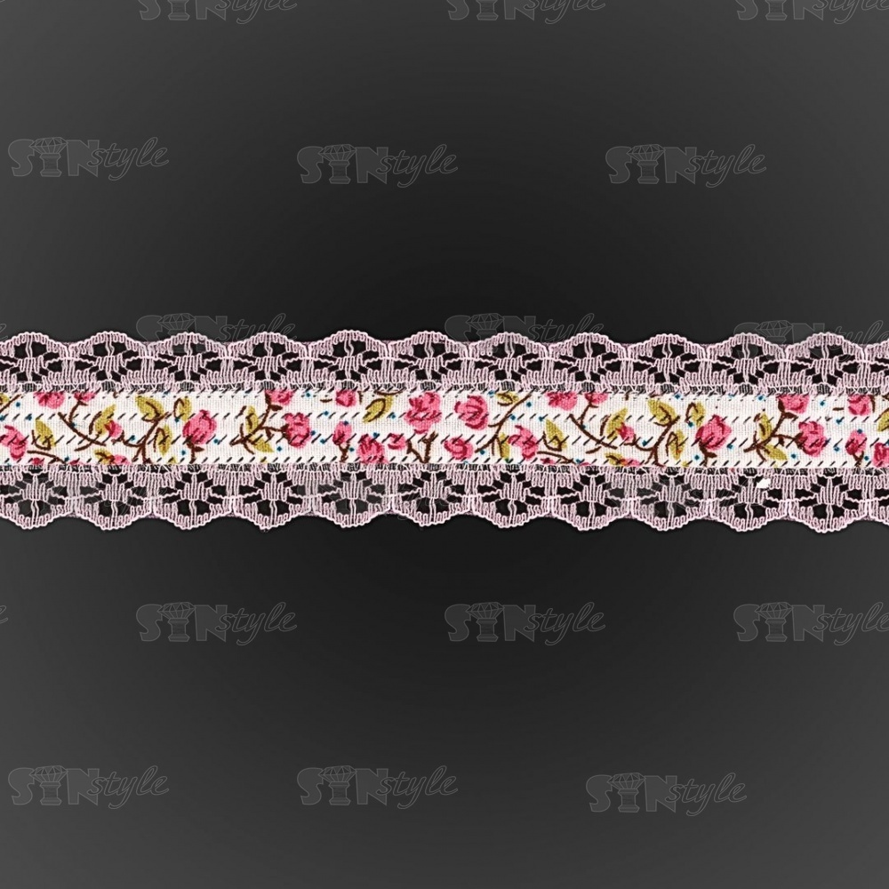 Декоративная лента на кружевной основе с цветочным принтом, цвет розовый, ширина 30 мм, намотка 20 ярдов