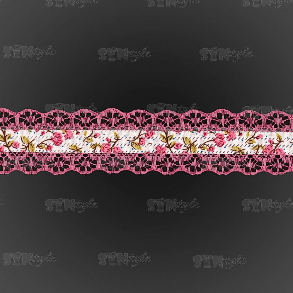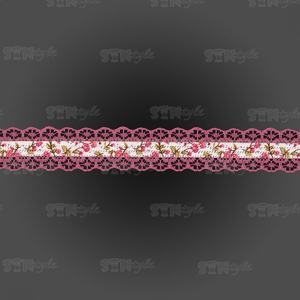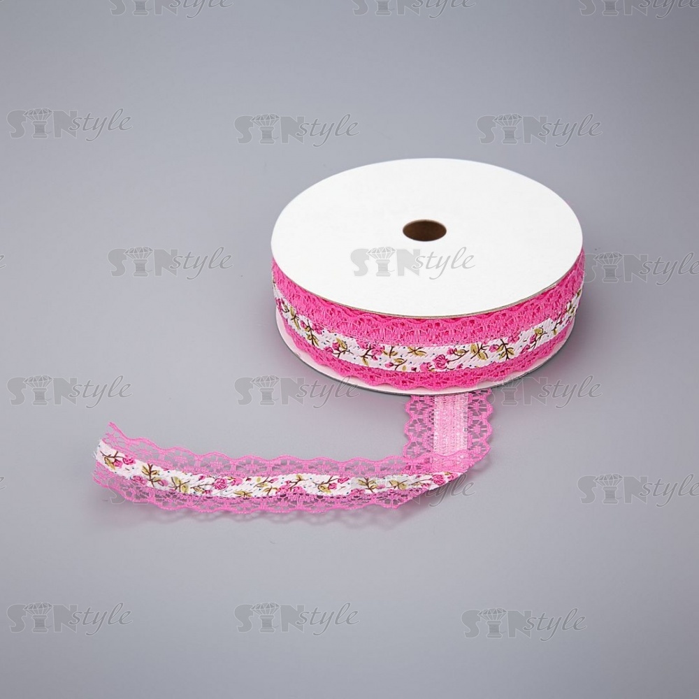 Декоративная лента на кружевной основе с цветочным принтом, цвет фуксия, ширина 30 мм, намотка 20 ярдов