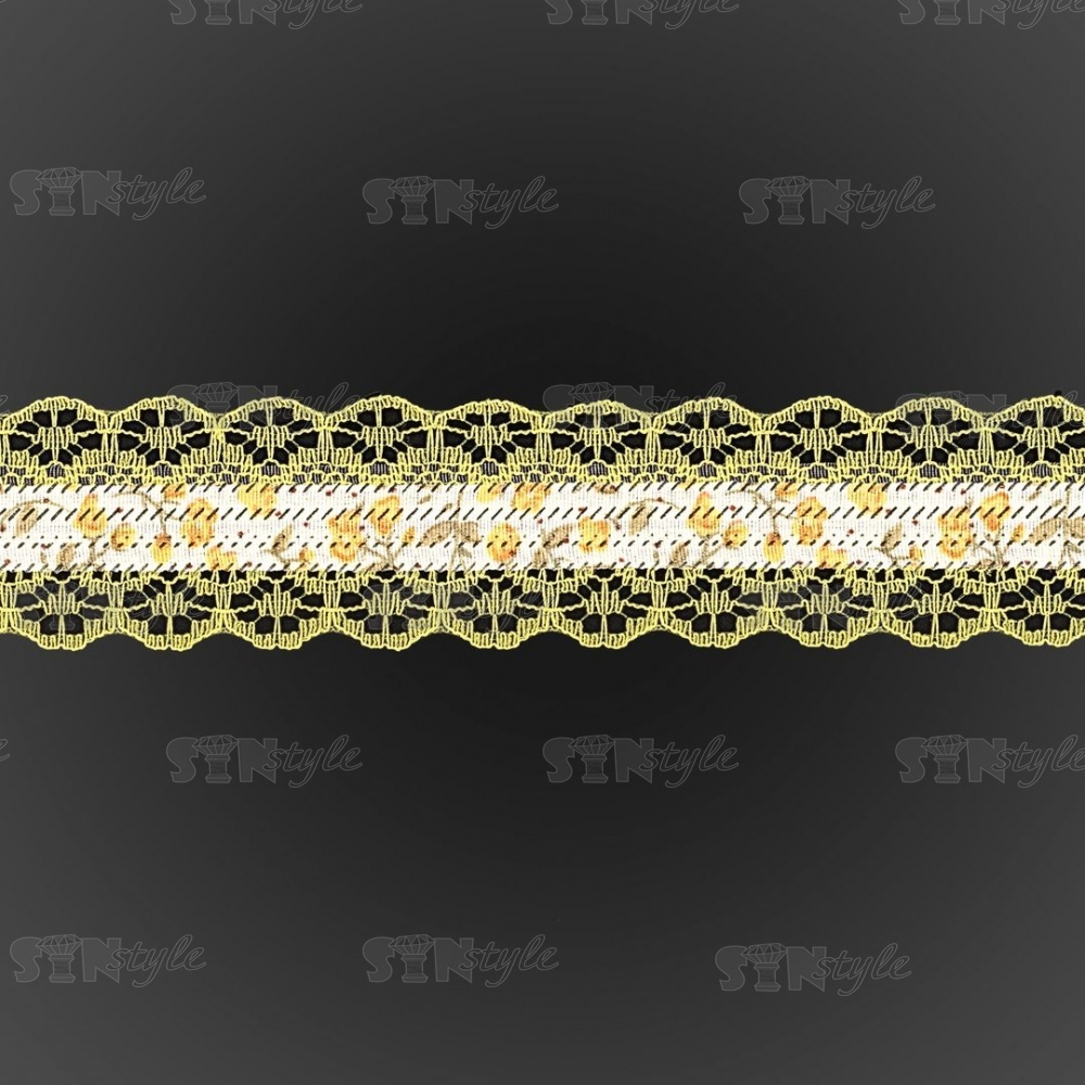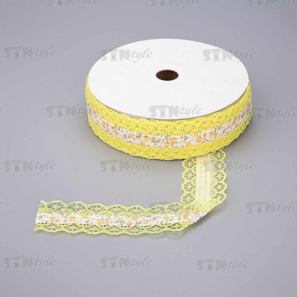 Декоративная лента на кружевной основе с цветочным принтом, цвет желтый, ширина 30 мм, намотка 20 ярдов