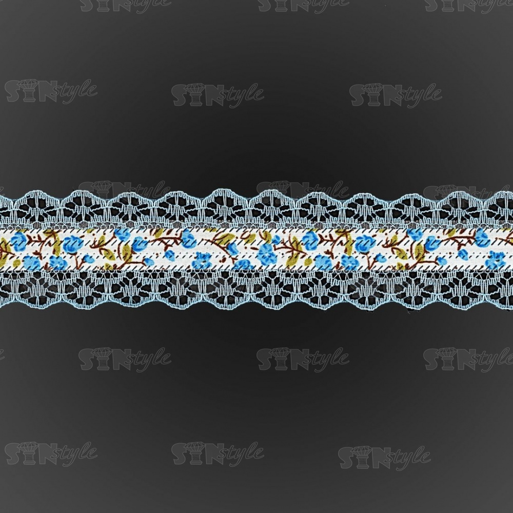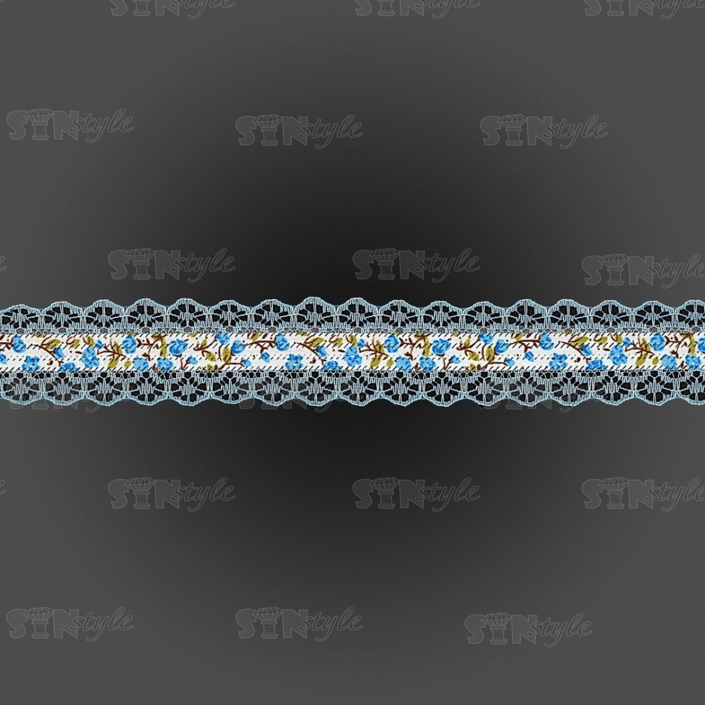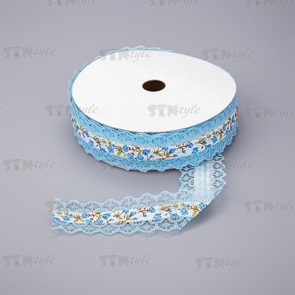 Декоративная лента на кружевной основе с цветочным принтом, цвет голубой, ширина 30 мм, намотка 20 ярдов