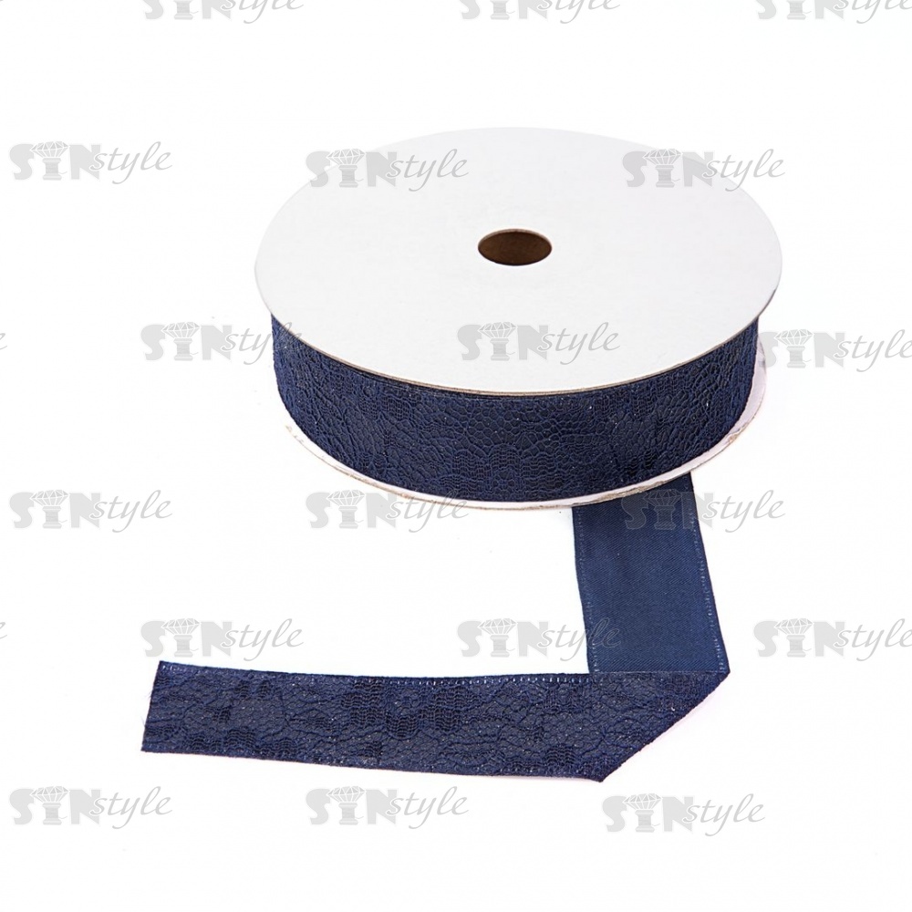 Декоративная лента двухслойная, цвет темно-синий, ширина 25 мм, намотка 20 ярдов