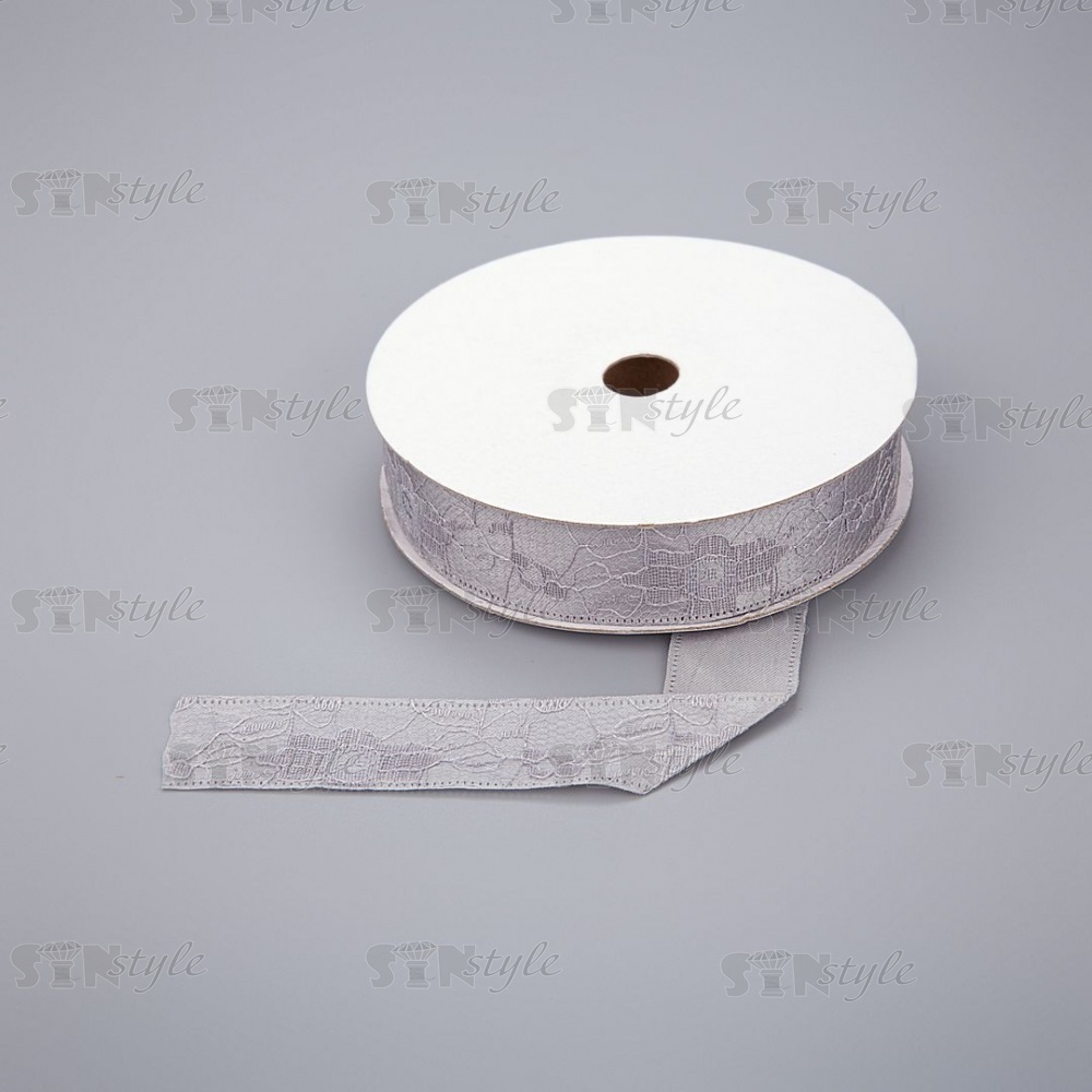 Декоративная лента двухслойная, цвет серый, ширина 25 мм, намотка 20 ярдов