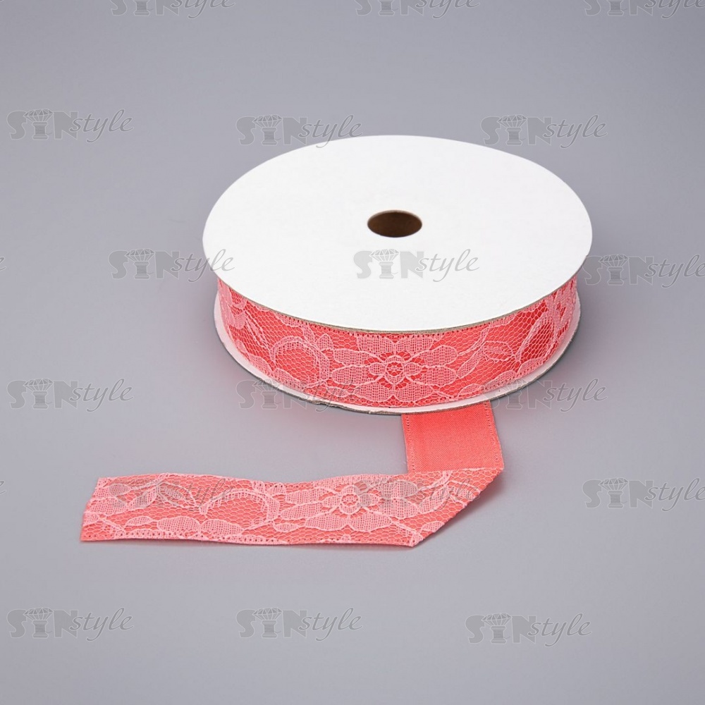 Декоративная лента двухслойная, цвет коралловый, ширина 25 мм, намотка 20 ярдов