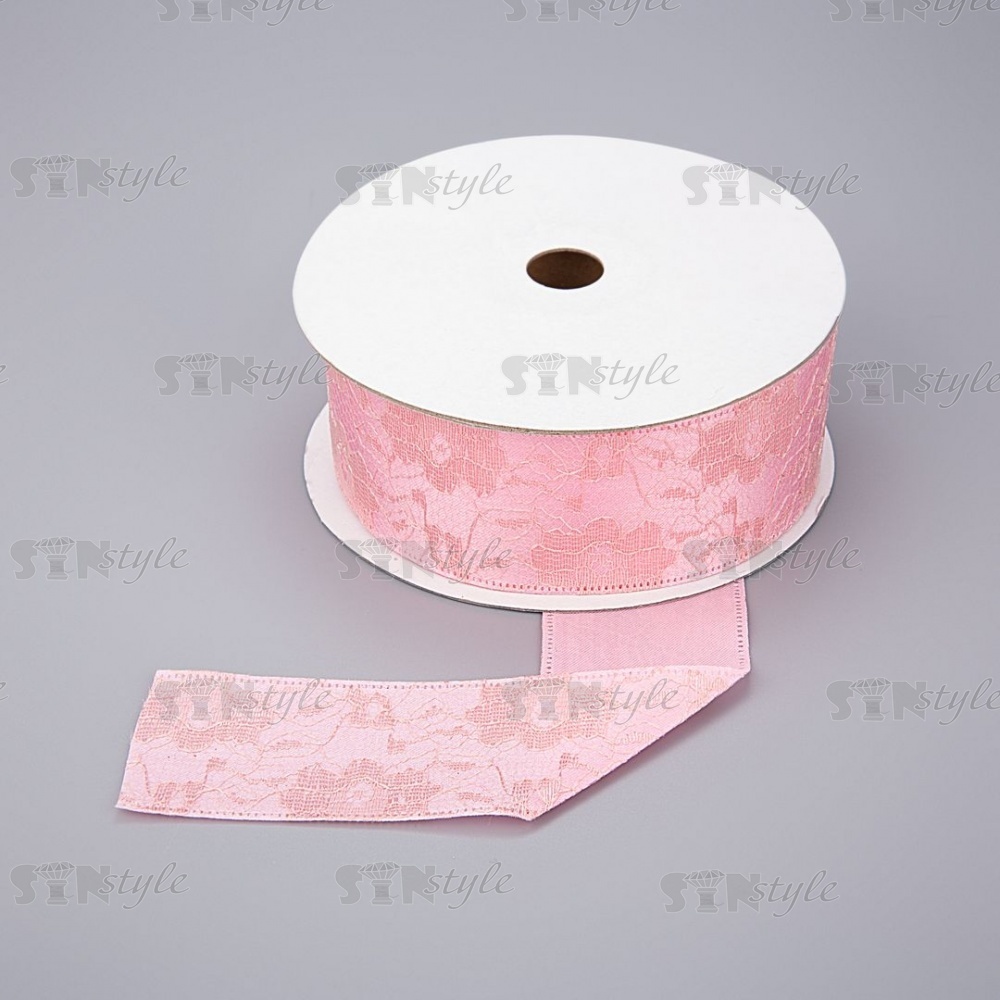 Декоративная лента двухслойная, цвет розовый, ширина 40 мм, намотка 20 ярдов
