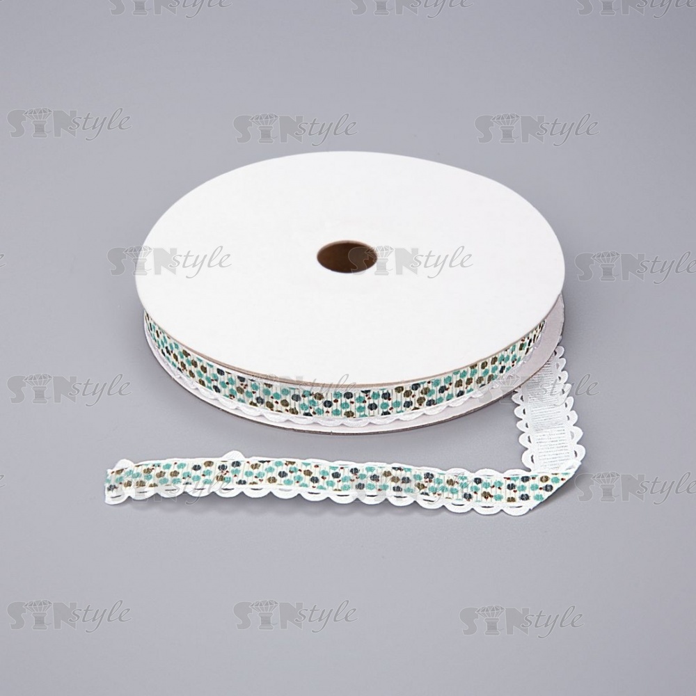 Декоративная репсовая лента с ажурным краем, цвет зеленый, ширина 15 мм, намотка 20 ярдов