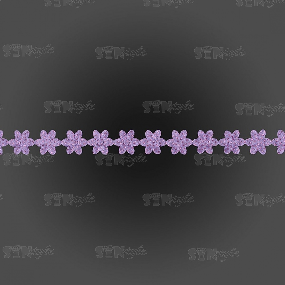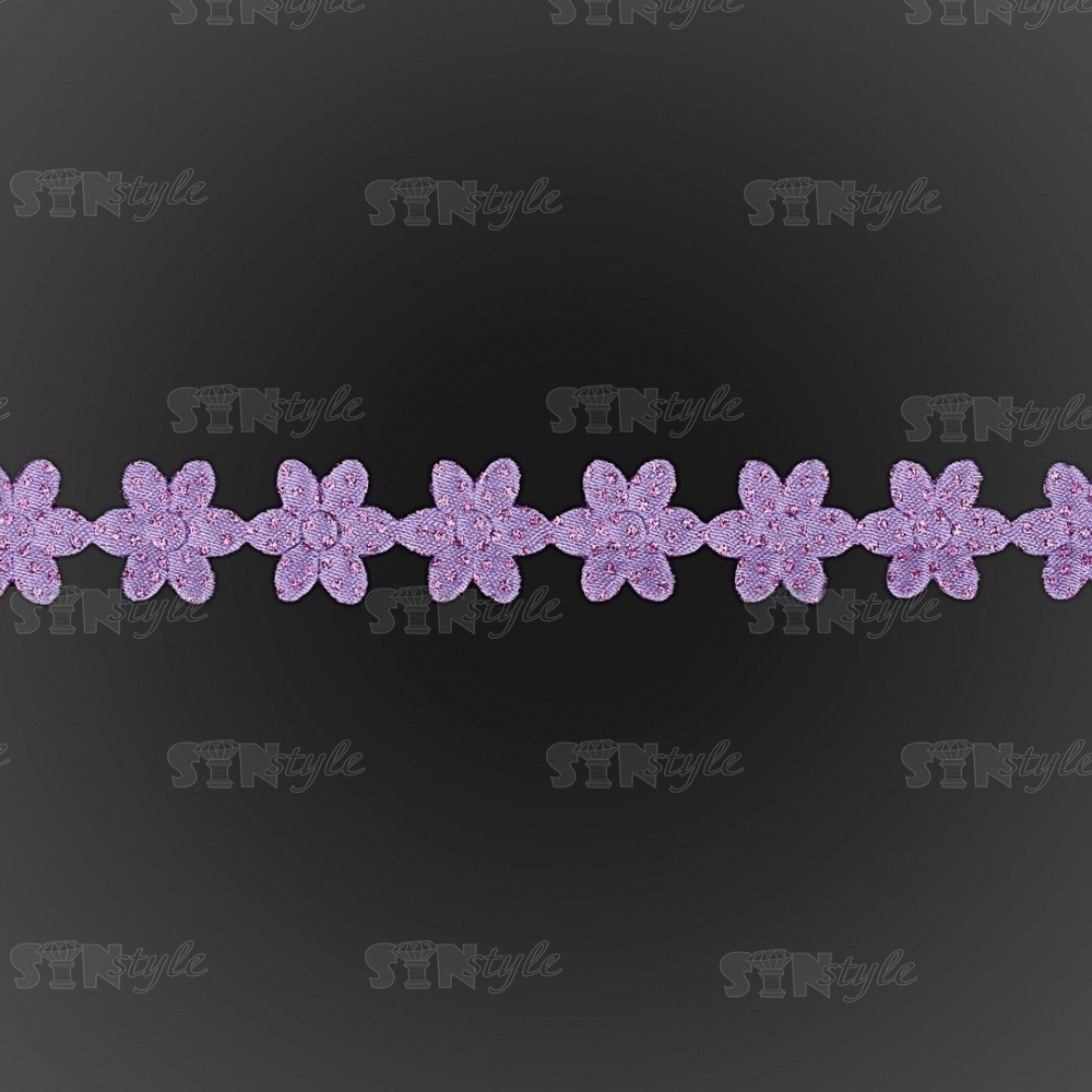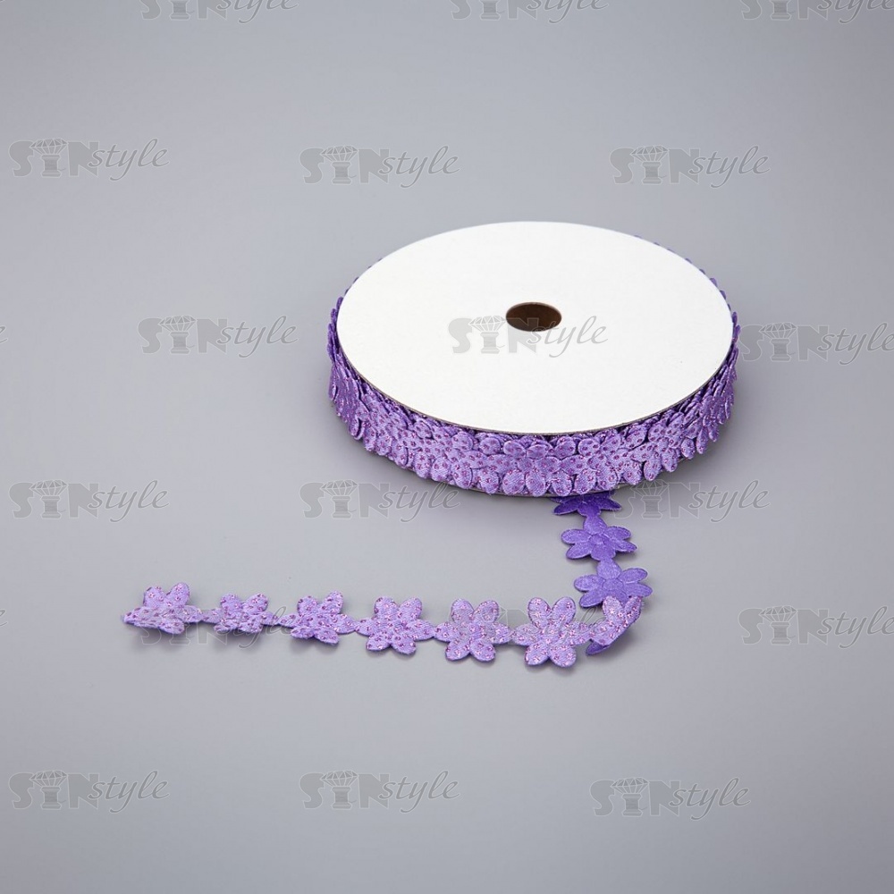 Декоративная лента из цветочков, цвет фиолетовый, ширина 20 мм, намотка 20 ярдов