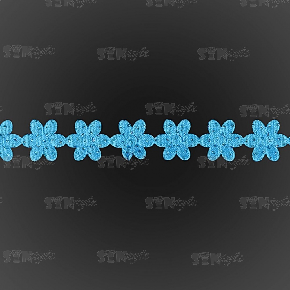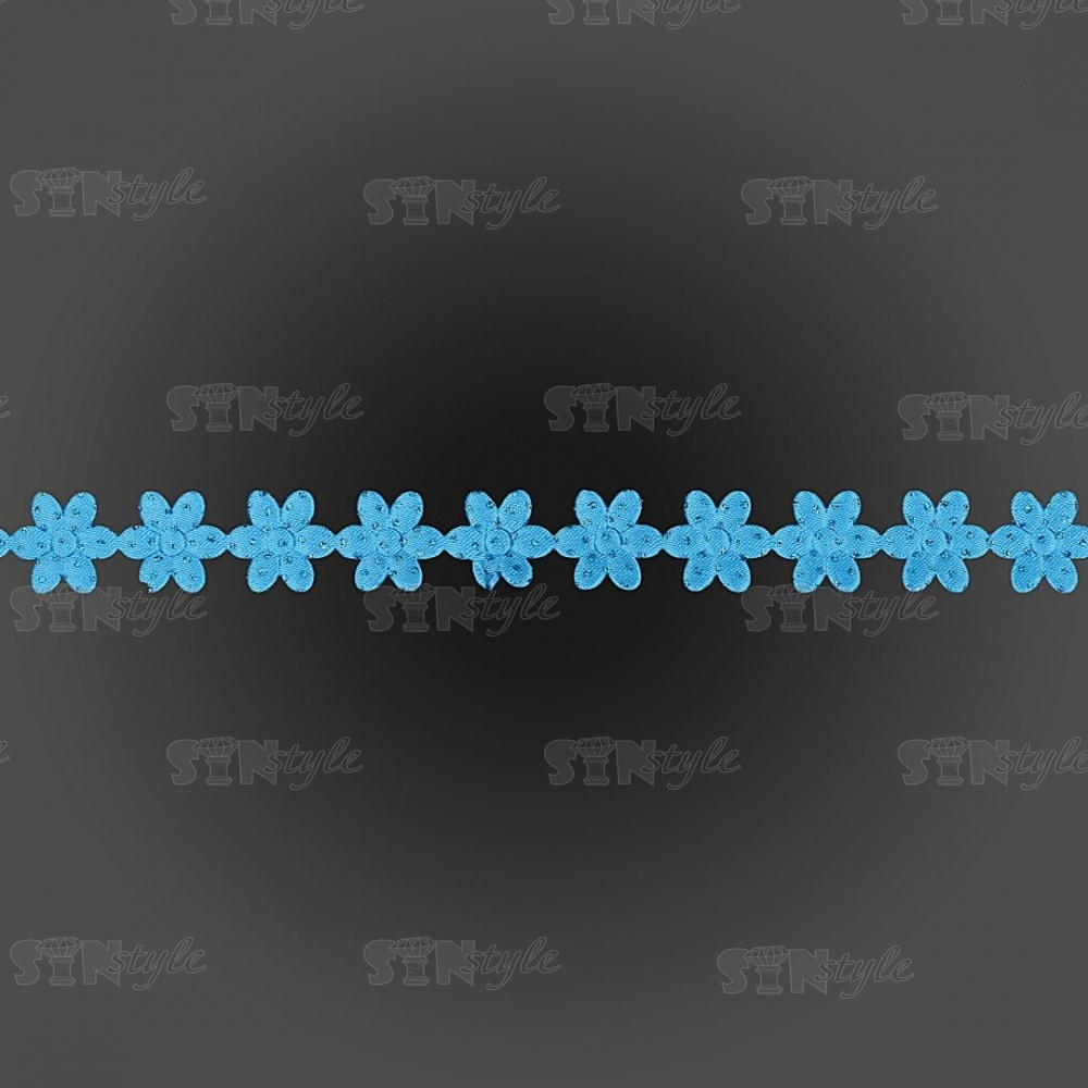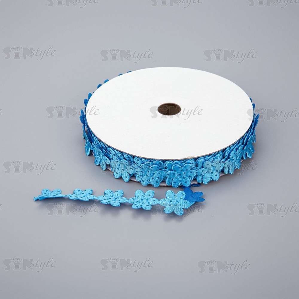 Декоративная лента из цветочков, цвет синий, ширина 20 мм, намотка 20 ярдов