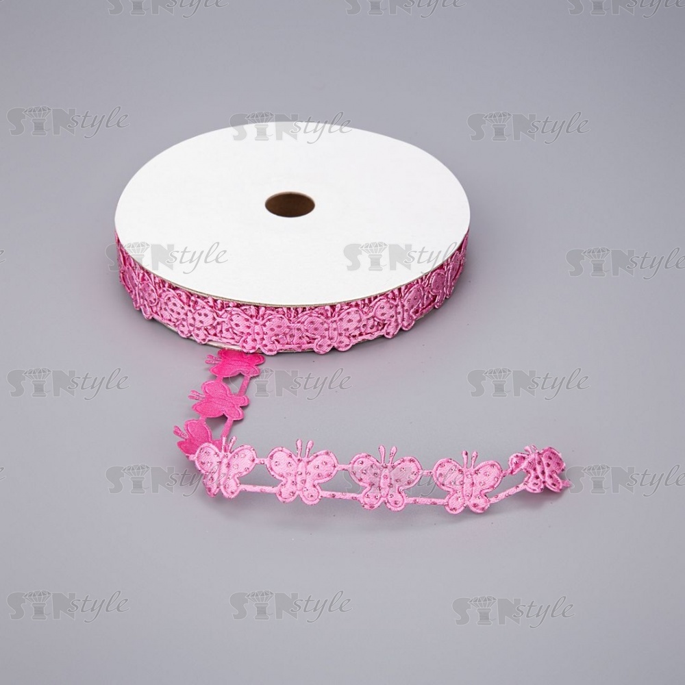 Декоративная лента из бабочек, цвет фуксия, ширина 20 мм, намотка 20 ярдов