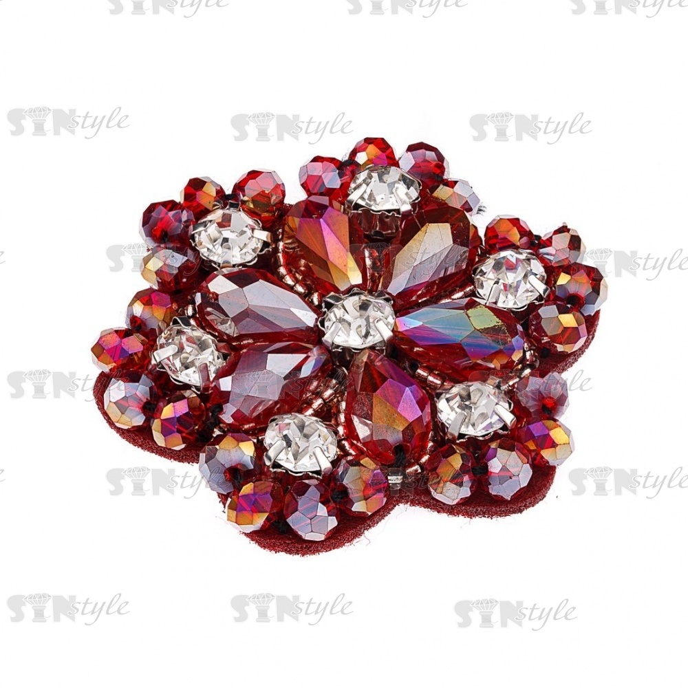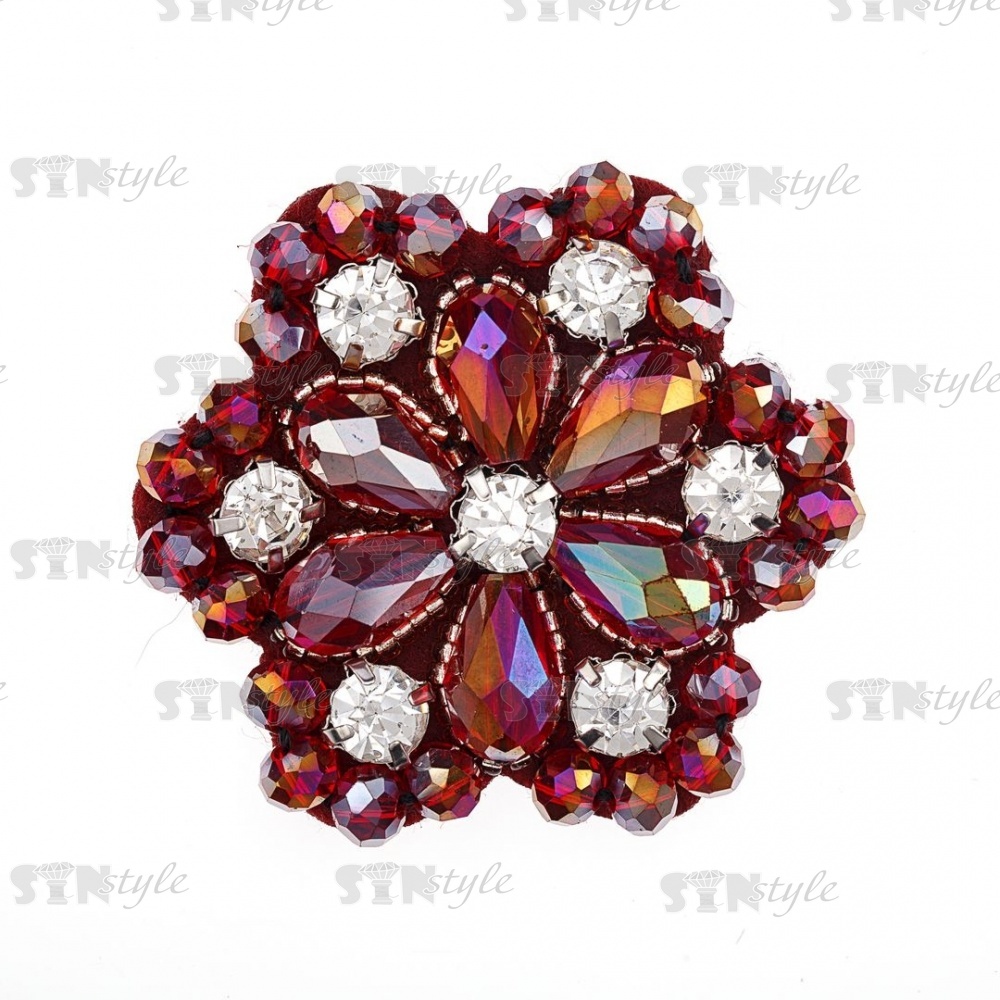 Аппликация с элементами из бисера и страз на фетровой основе, цвет бордоввй радужный (голография), размер 48 мм