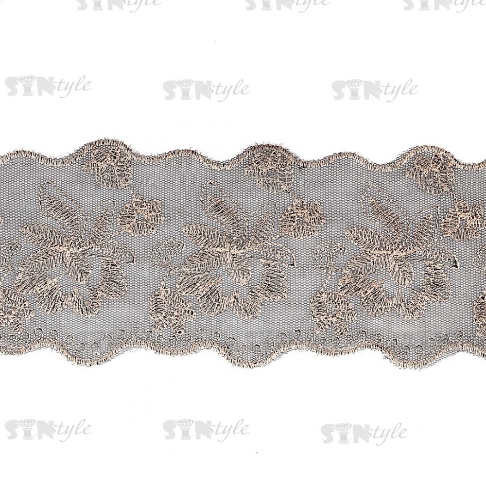 Кружево на сетке представляет собой кружевное полотно, основа которого сетка или фатин. Применяется для декоративной отделки лёгкой женской одежды, домашнего текстиля, аксессуаров, так же и для скрапбукинга, изготовления кукол, свадебных украшений .