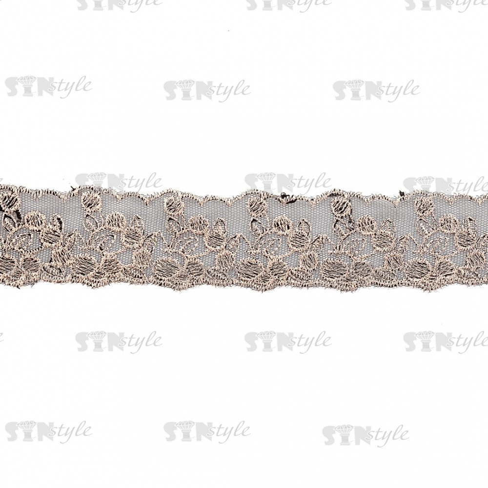 Кружево на сетке представляет собой кружевное полотно, основа которого сетка или фатин. Применяется для декоративной отделки лёгкой женской одежды, домашнего текстиля, аксессуаров, так же и для скрапбукинга, изготовления кукол, свадебных украшений .