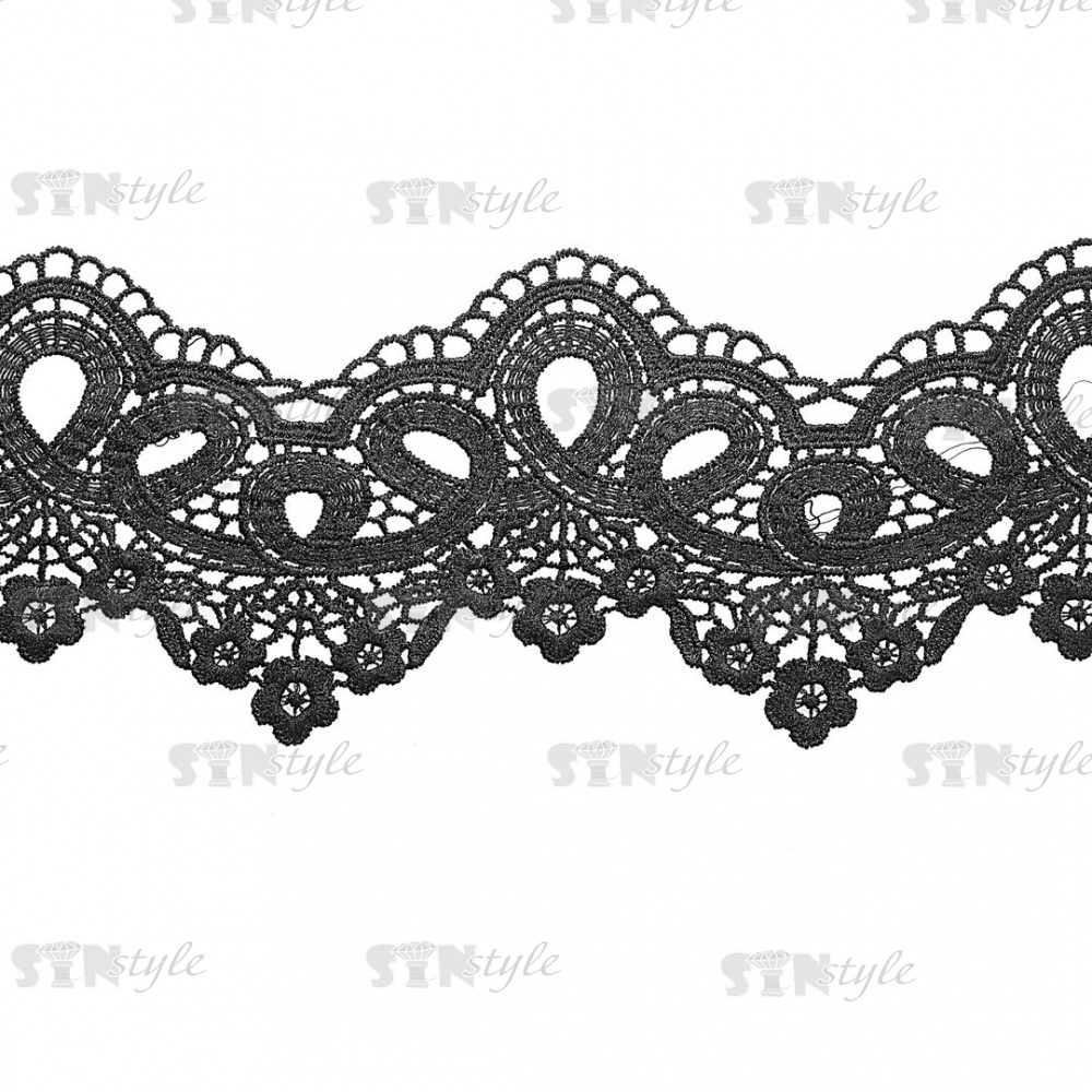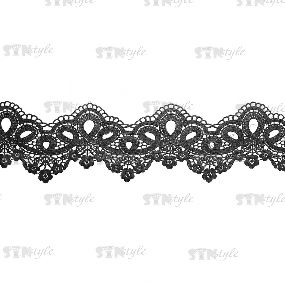 Кружево ажурное, нежная цветочная гирлянда с причудливым узором по верхнему краю, ширина 130 мм, цвет черный, намотка 15 ярдов