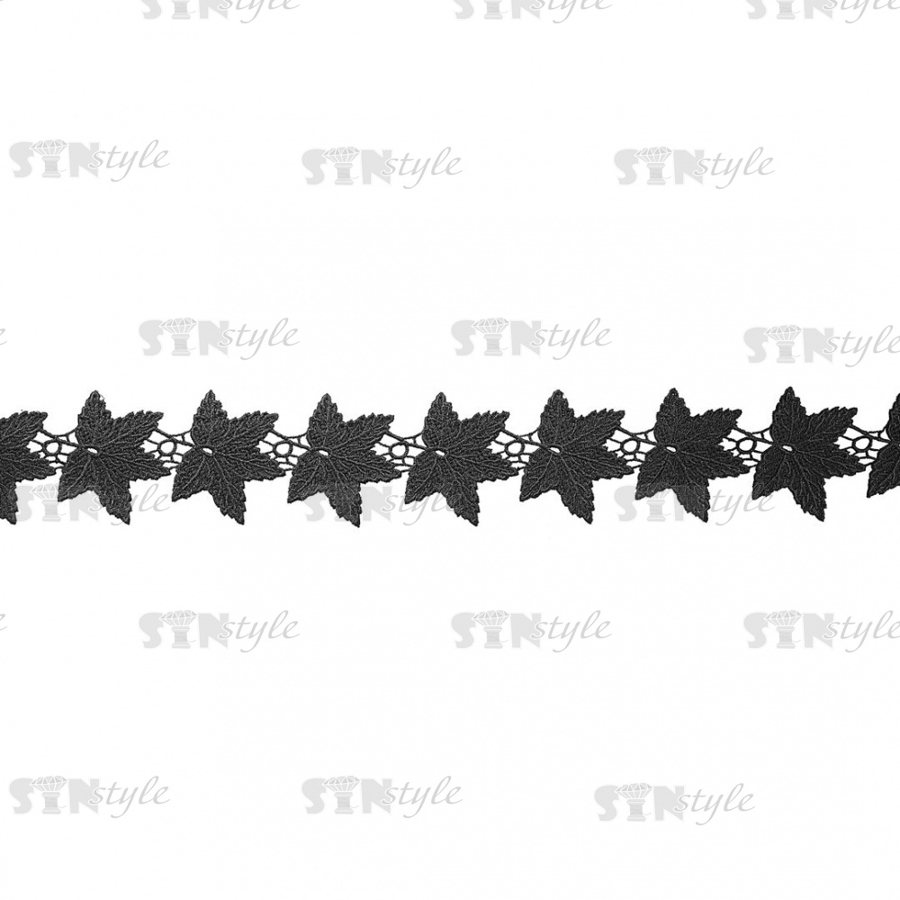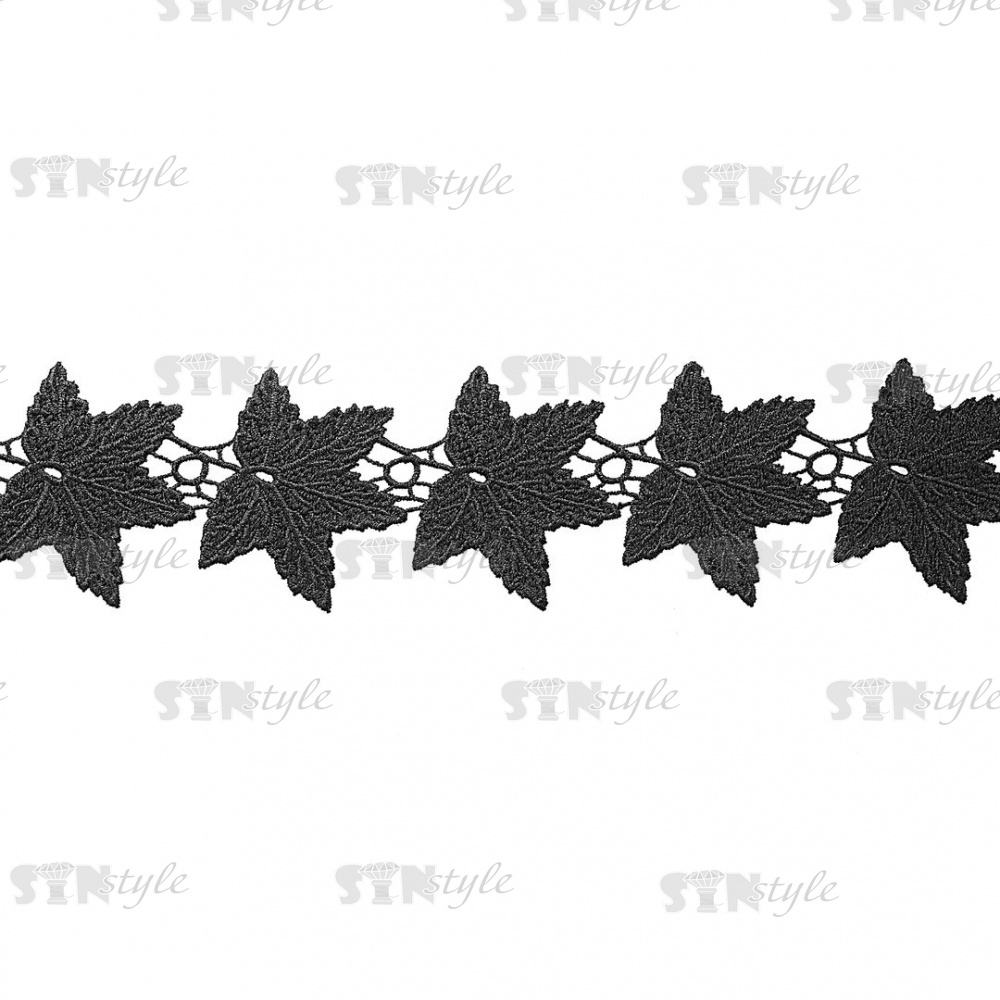 Кружево ажурное, нежная воздушная гирлянда из листьев с резным краем, ширина 60 мм, цвет черный, намотка 15 ярдов