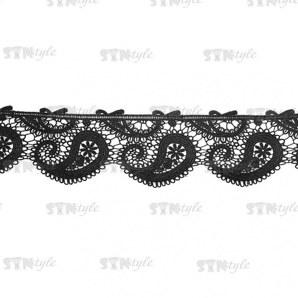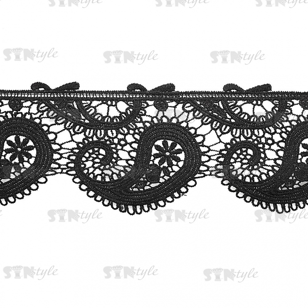 Кружево вязаное ажурное, цвет черный, намотка 15 ярдов, ширина 115 мм