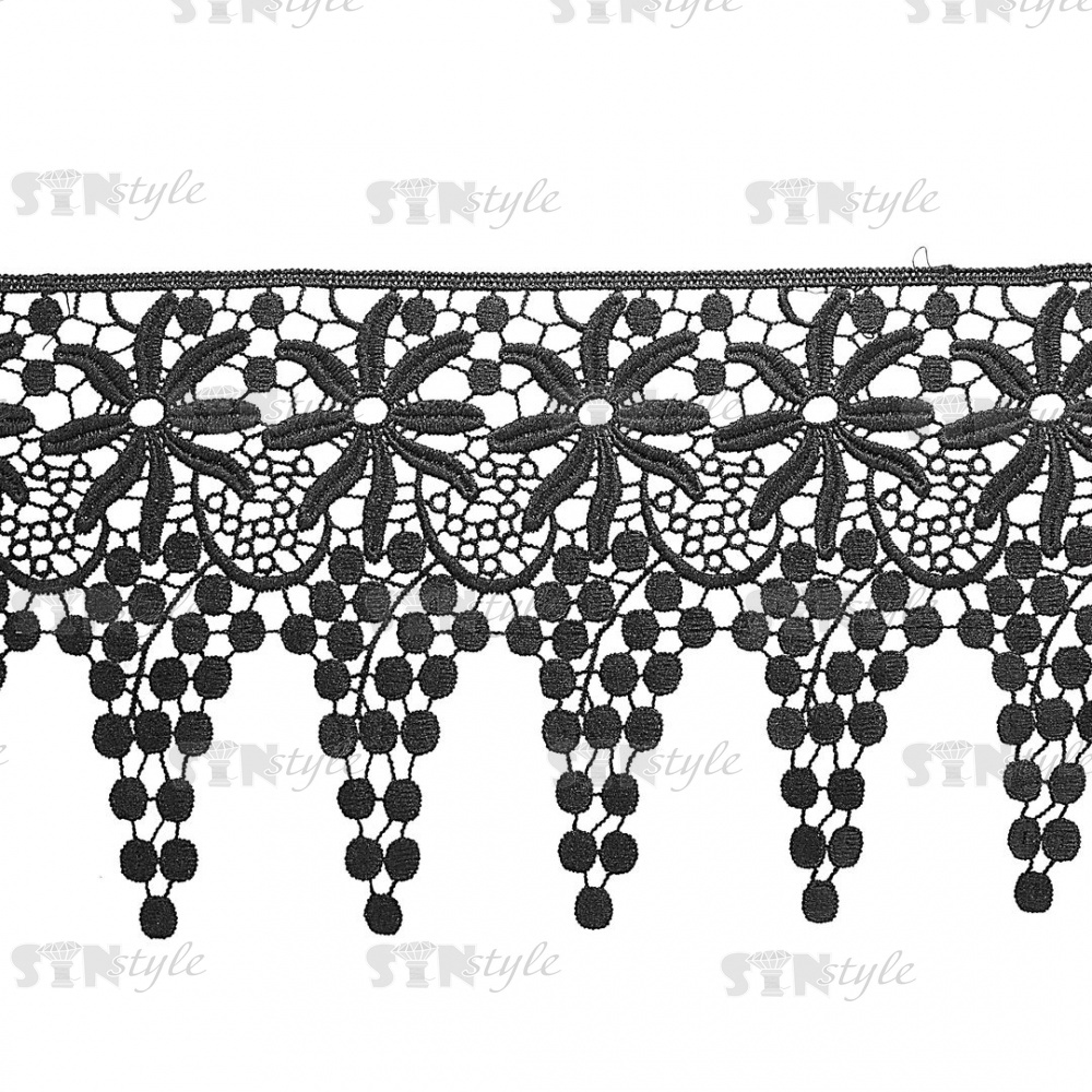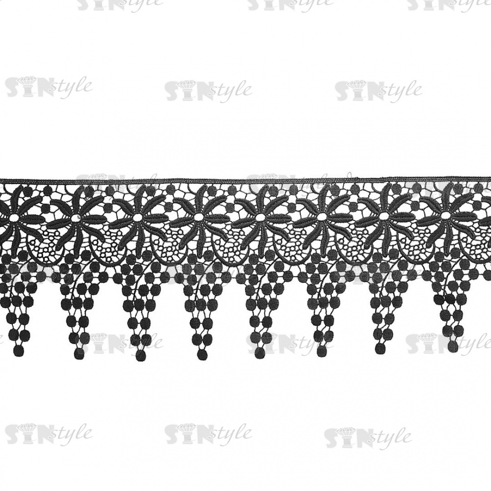 Кружево вязаное ажурное, ширина 150 мм, цвет черный, намотка 15 ярдов