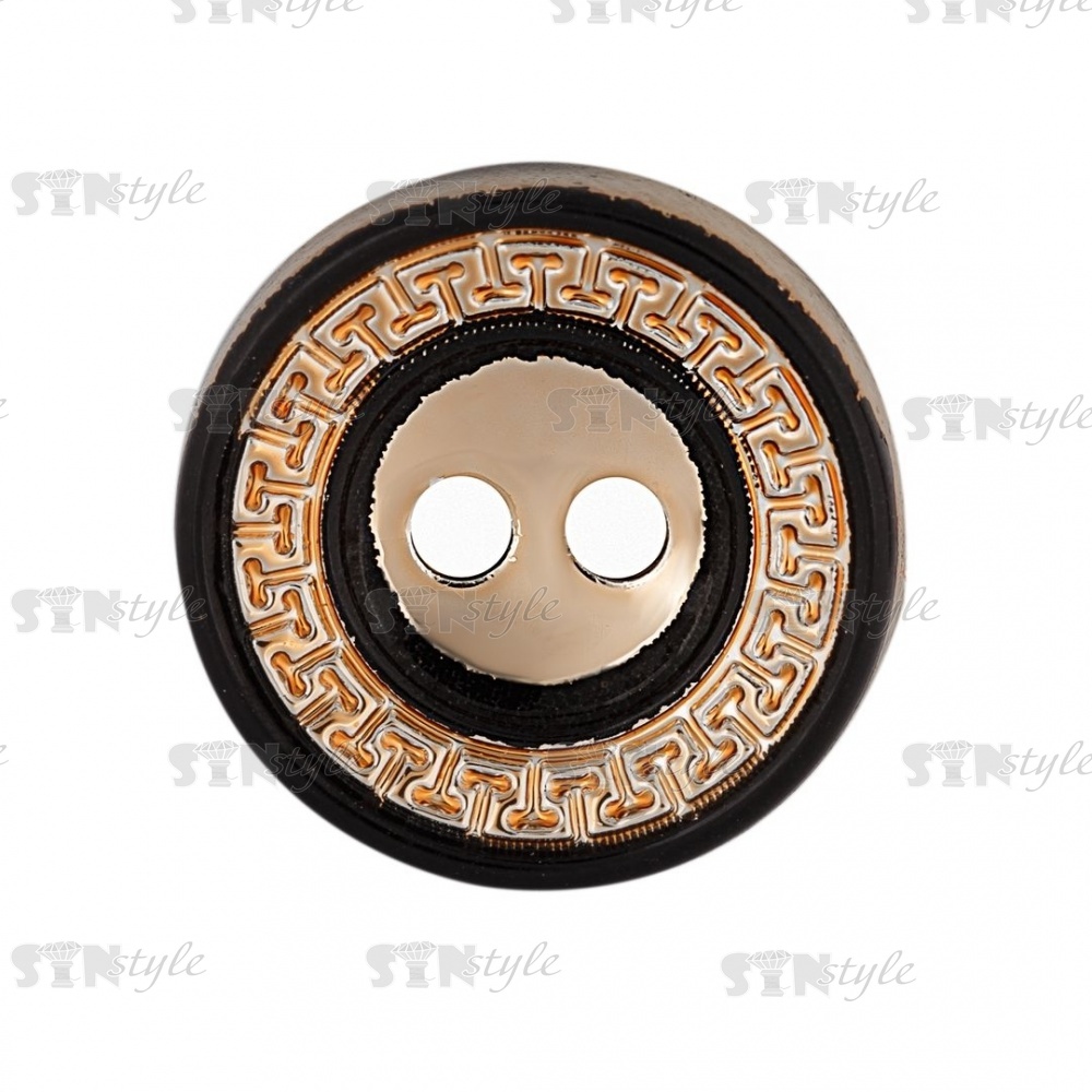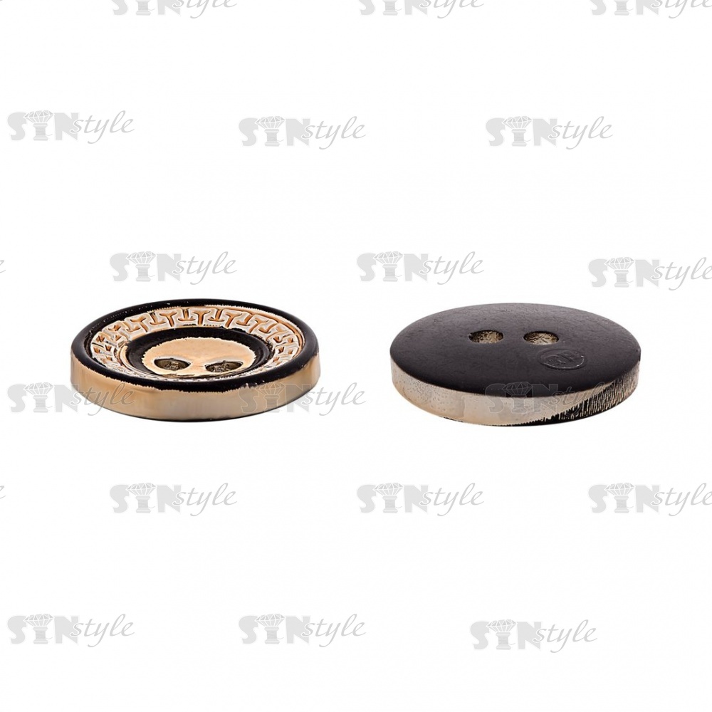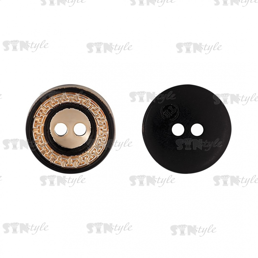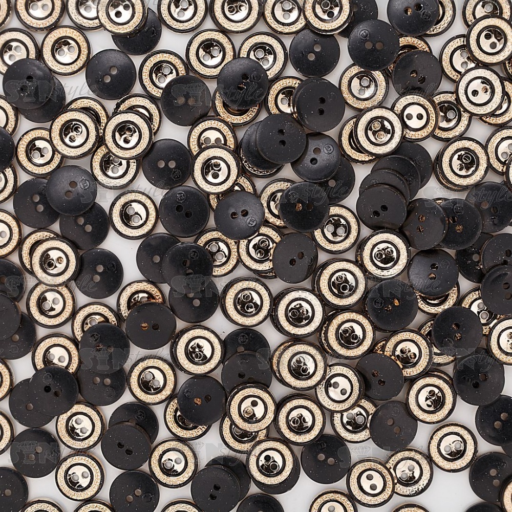 Пуговица пластиковая на два прокола, золотая с черным, 28L