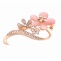 Брошь металлическая со стразами, застежка булавка, 33х58 мм, цвет золото+белые и розовые стразы