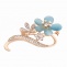 Брошь металлическая со стразами, застежка булавка, размер 33х58 мм, цвет золото+белый+голубой