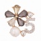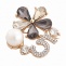 Брошка металлическая со стразами, застежка булавка, цвет золото+разноцветные стразы+белая бусина, размер 38х38 мм