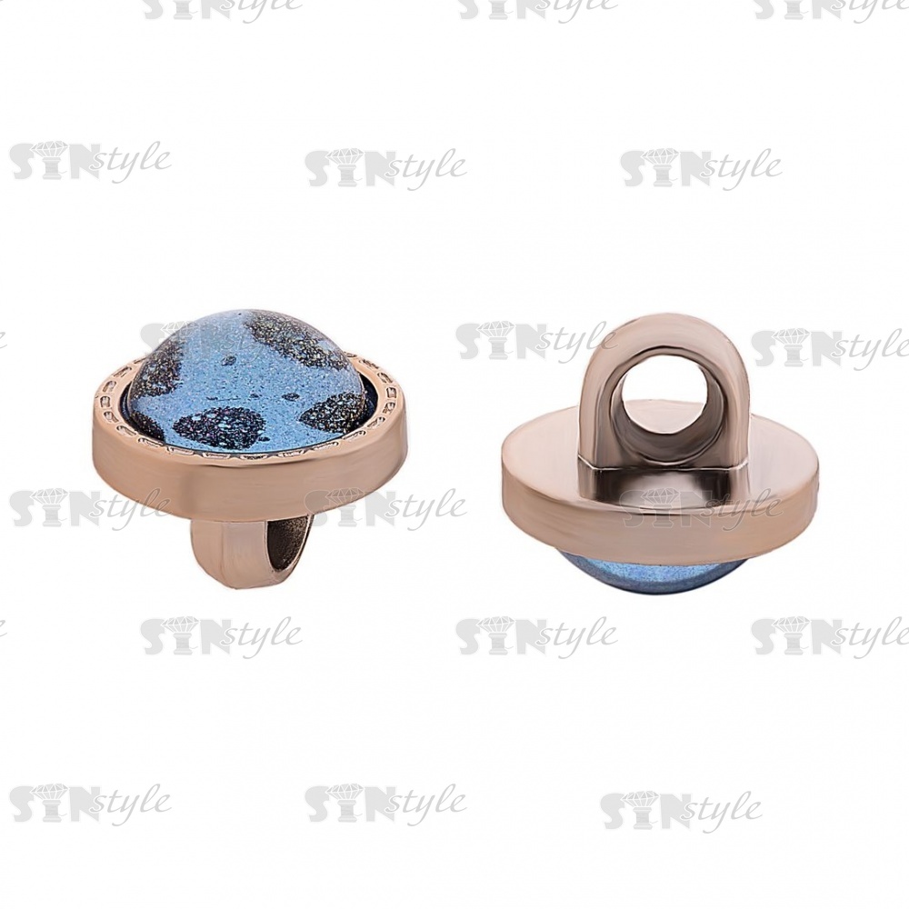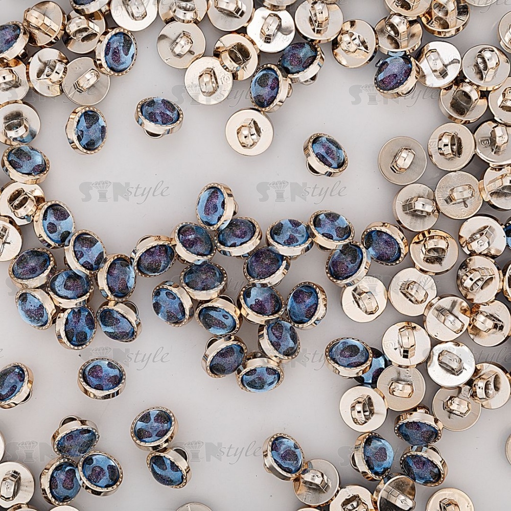 Пуговица пластиковая на ножке, круглой формы, размер 18L, золотая основа с вставкой голубого цвета