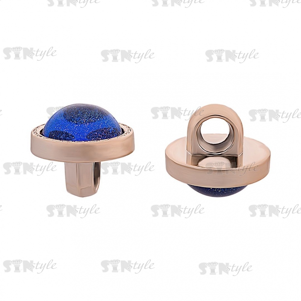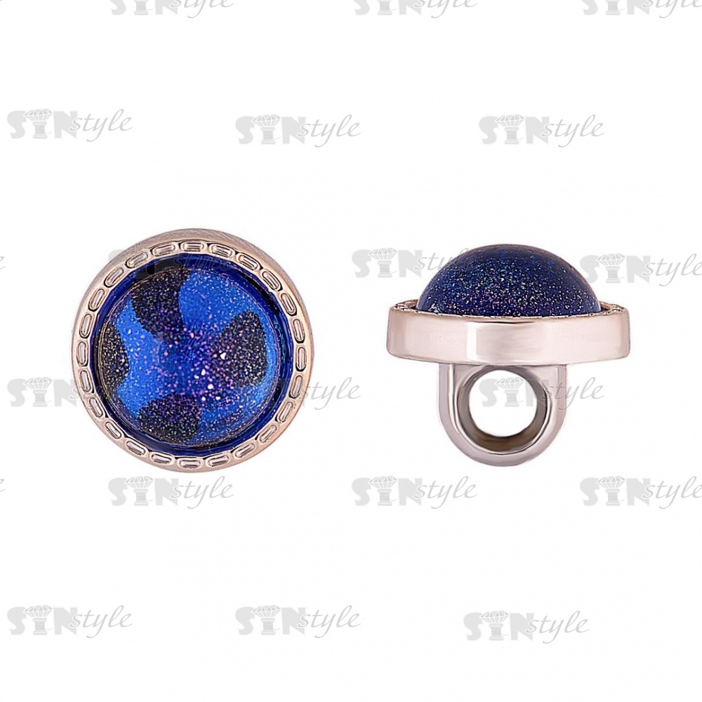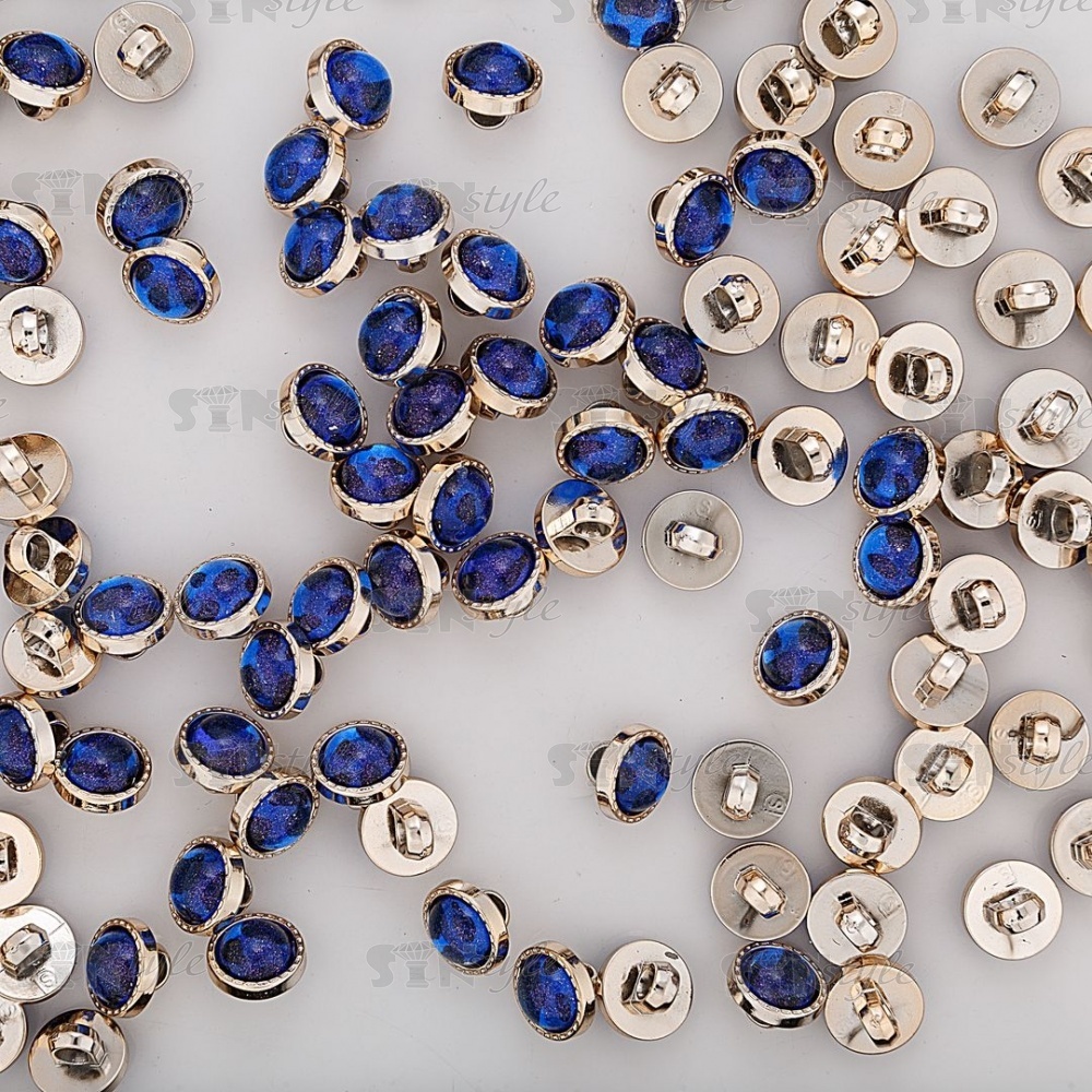 Пуговица пластиковая на ножке, круглой формы, размер 18L, золотая основа с вставкой синего цвета
