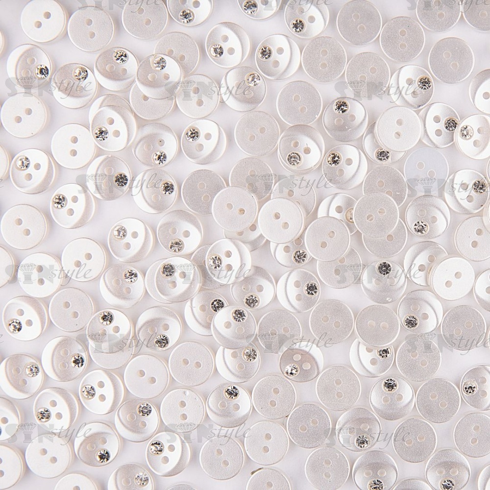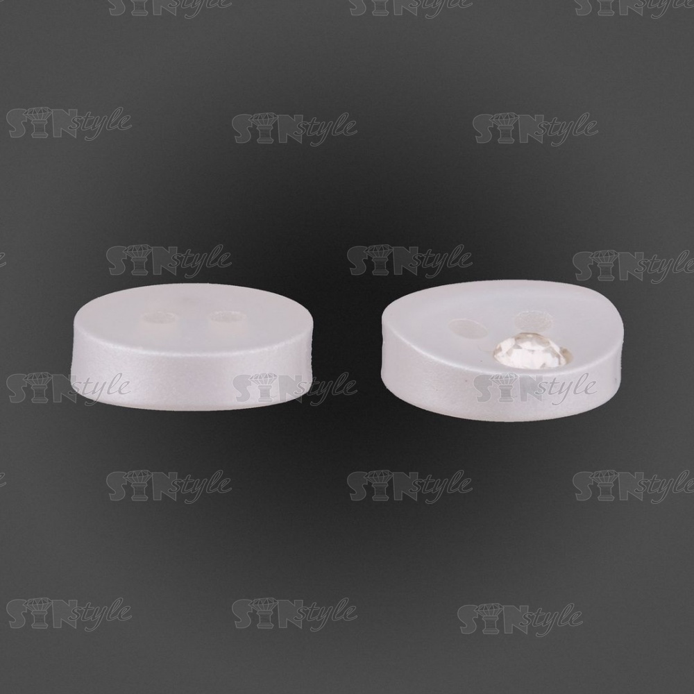 Пуговица пластиковая на два прокола, размер 18L, цвет белый+белая страза