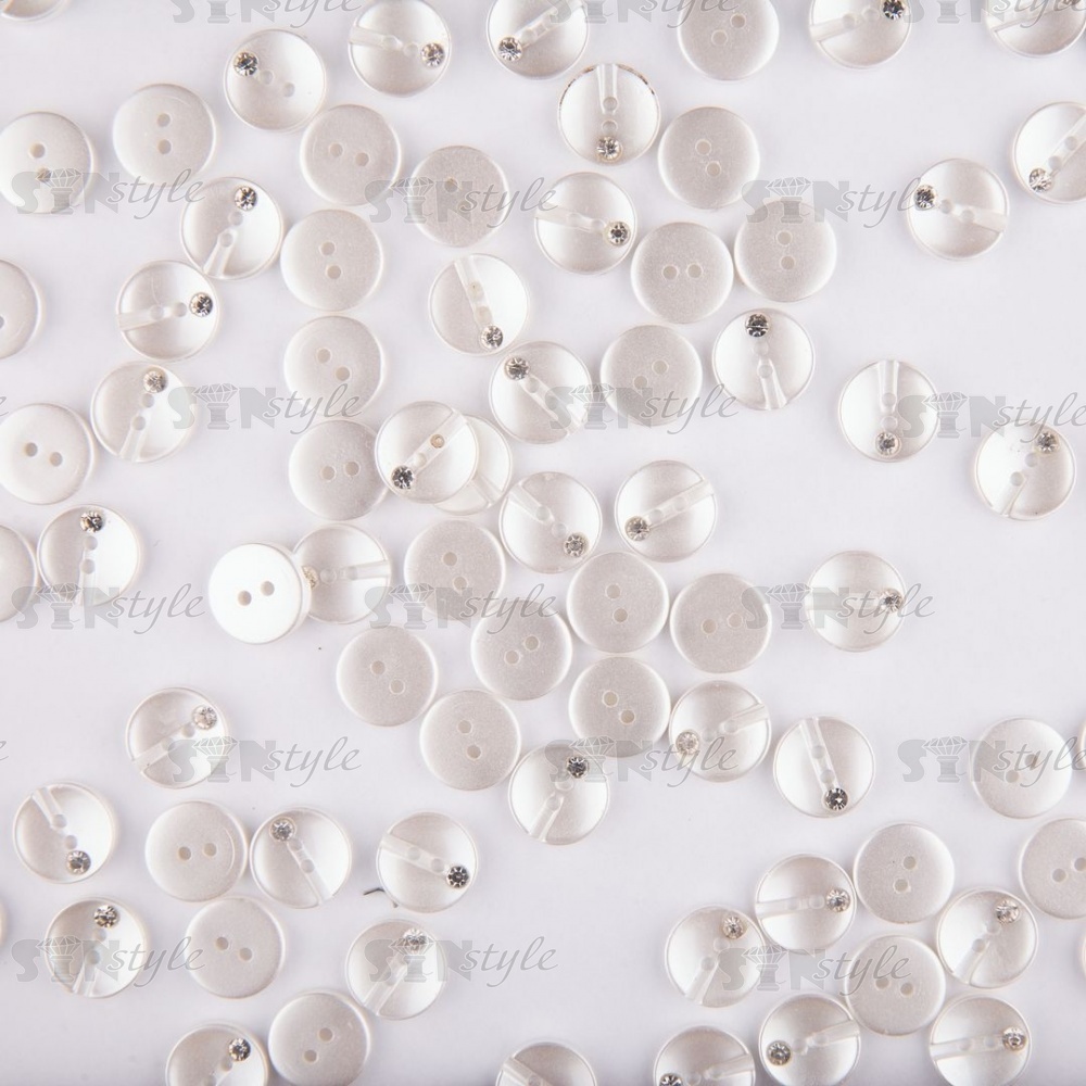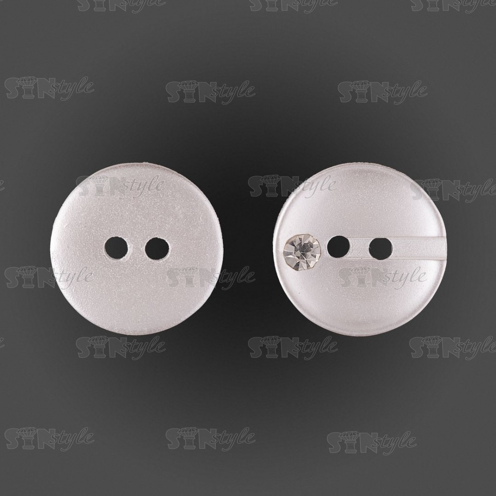 Пуговица пластиковая на два прокола, размер 18L, цвет белый+белая страза