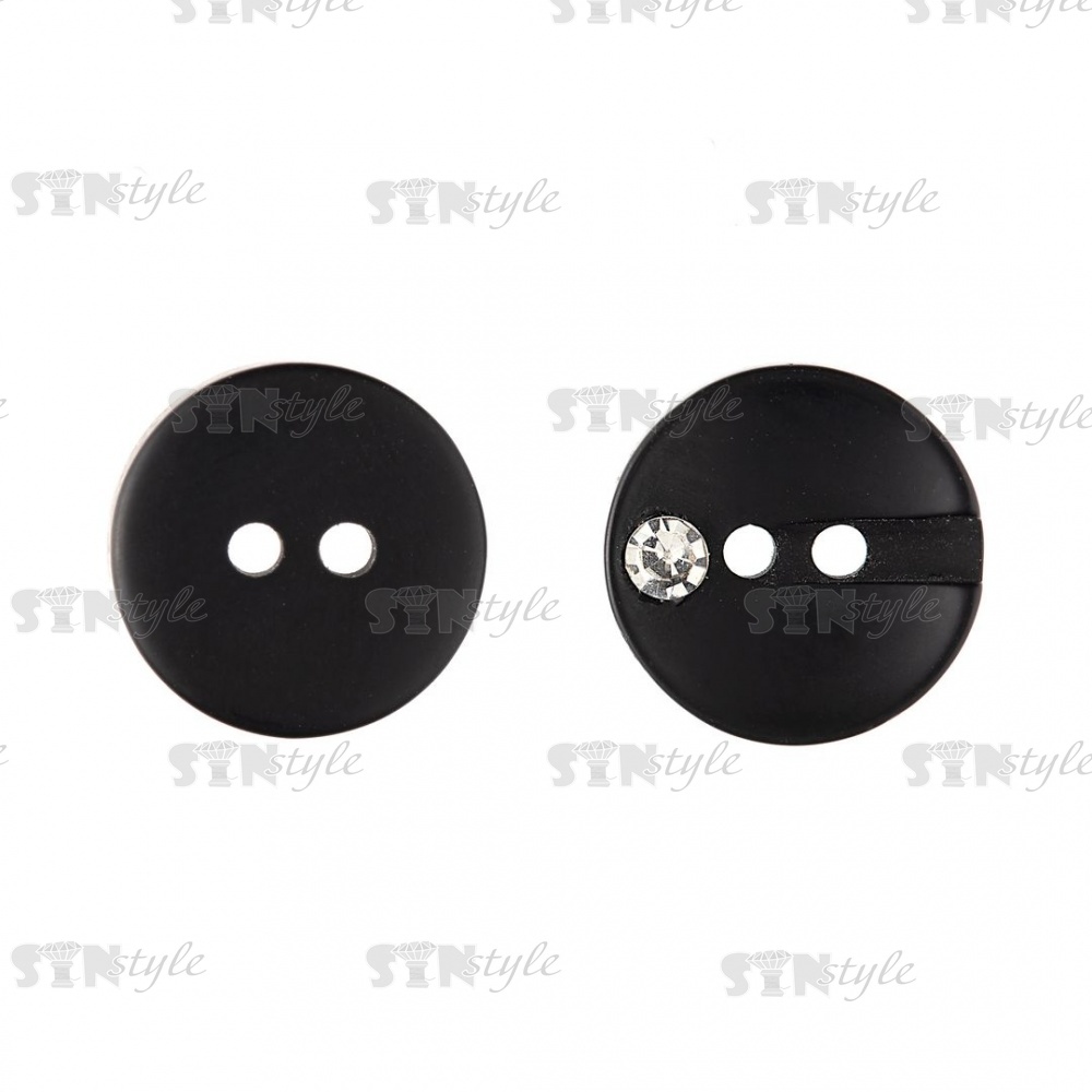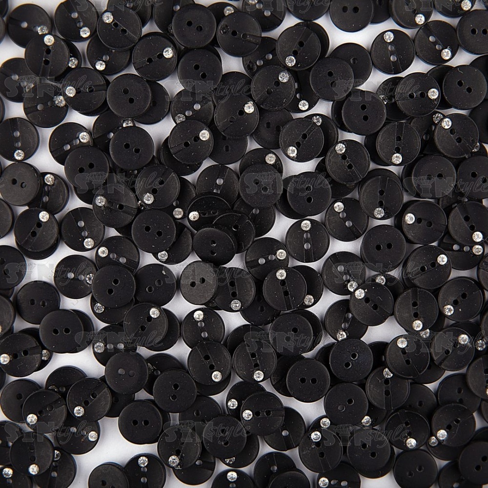Пуговица пластиковая 20L, цвет черный+белая страза