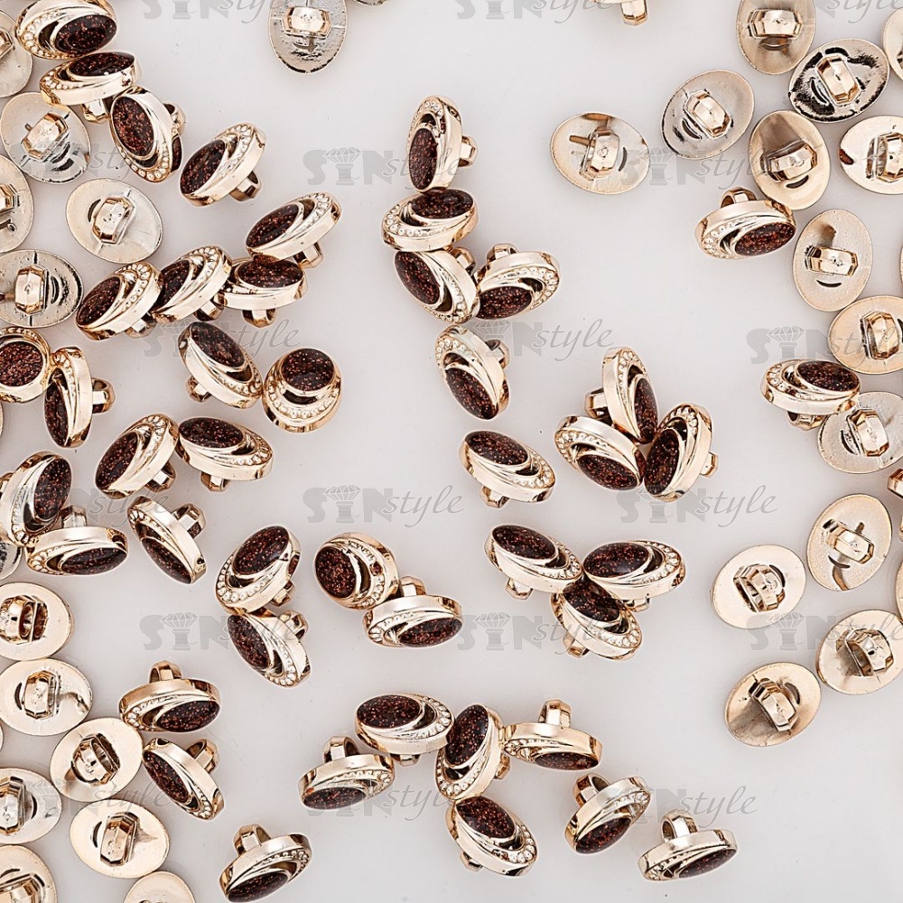 Пуговица пластиковая на ножке, овальной формы, основа золотая, вставка кофейная, размер 20L