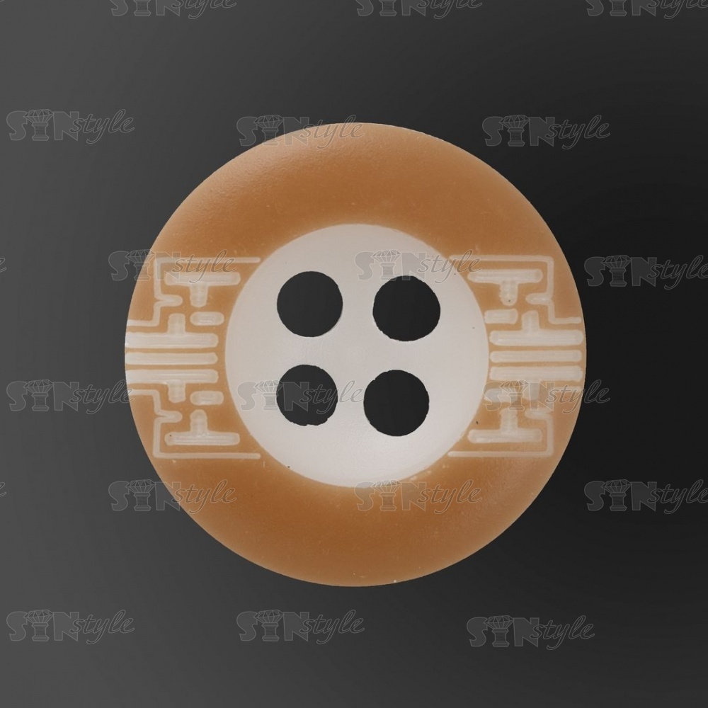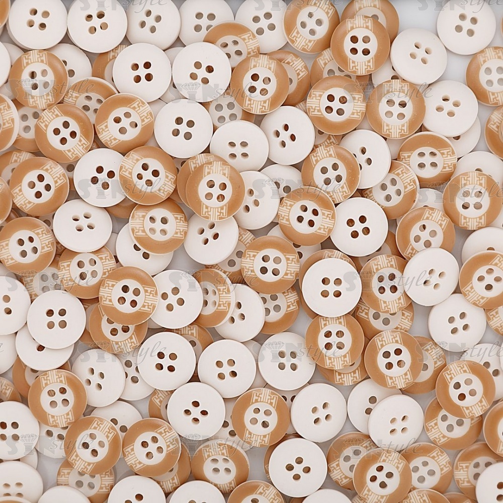 Пуговица пластиковая на четыре прокола, размер 24L, цвет белый с бежевым