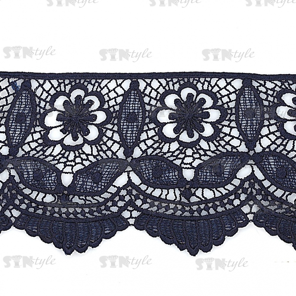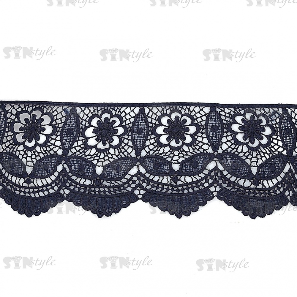 Кружево ажурное, красивая цветочная гирлянда с причудливым узором и резным краем, ширина 105 мм, цвет темно-синий, намотка 15 ярдов
