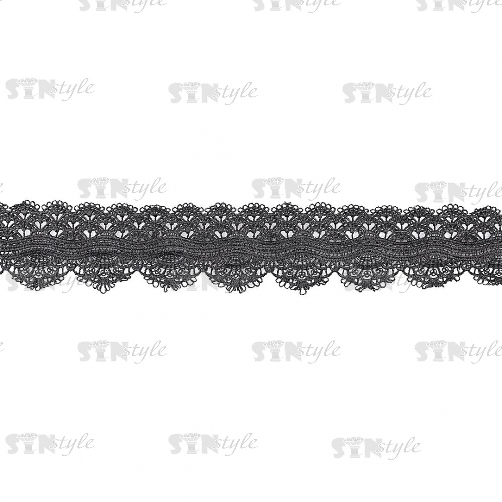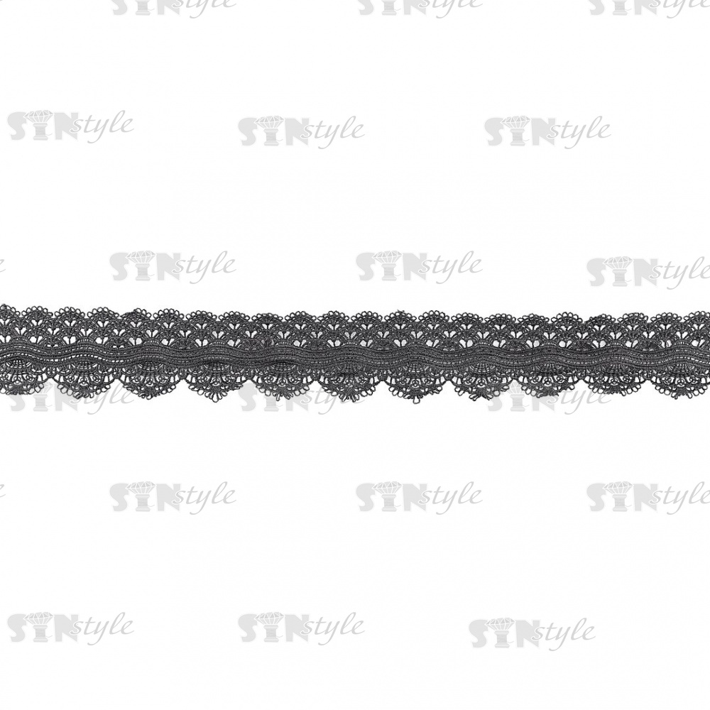 Кружево ажурное, нежная тонкая гирлянда с резными краями, ширина 55 мм, цвет черный, намотка 15 ярдов