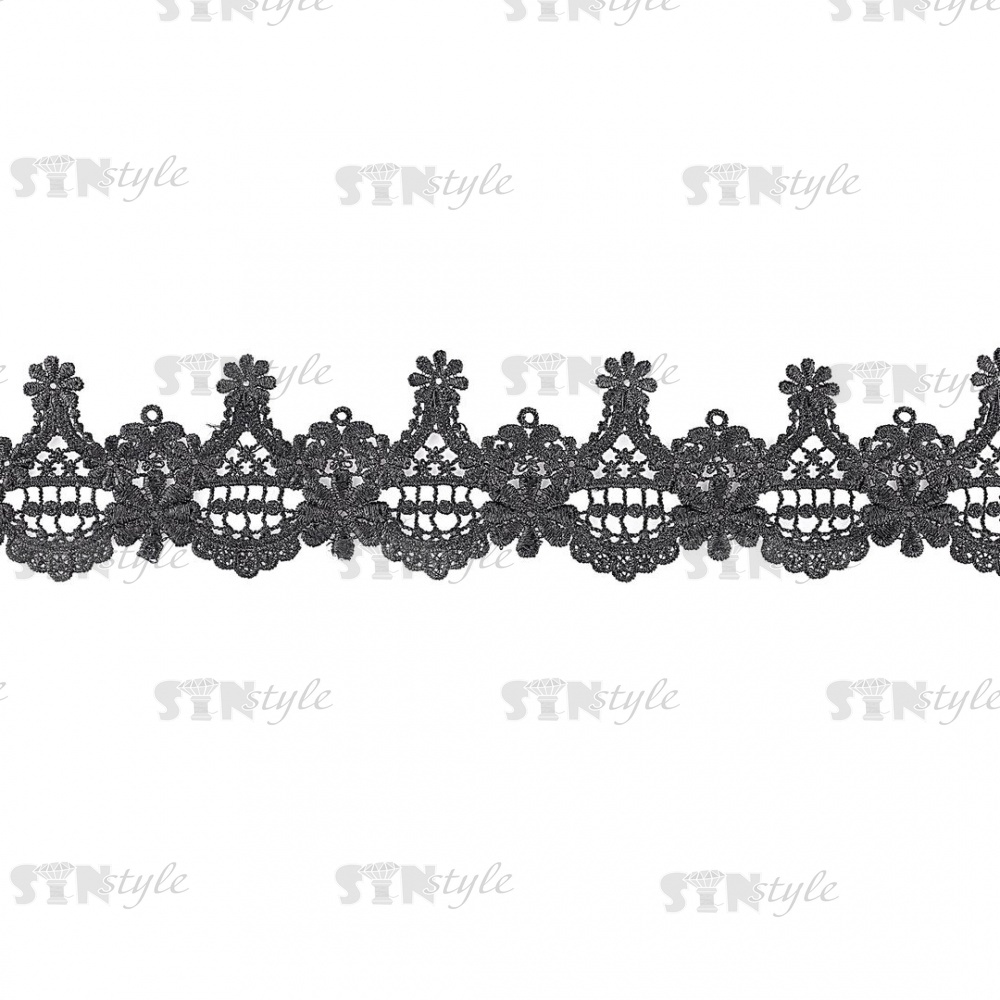 Кружево ажурное, красивая воздушная гирлянда с причудливым узором и резным краем, ширина 65 мм, цвет черный, намотка 15 ярдов