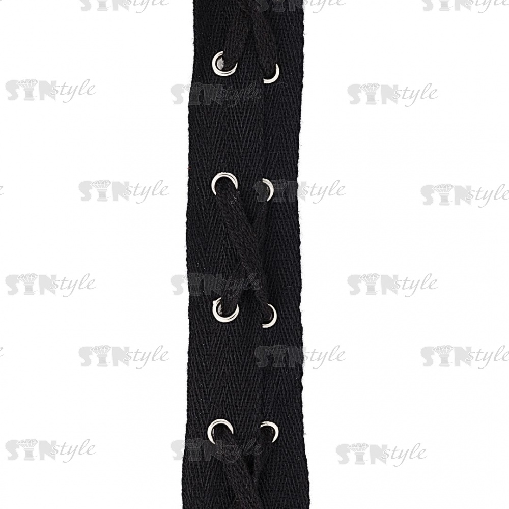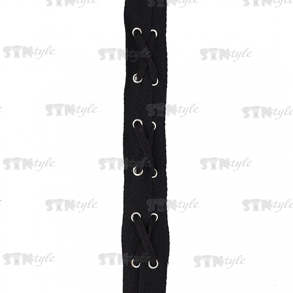 Декоративная тесьма отделочная с люверсами и шнуровкой, ширина 35 мм, цвет черный+серебро, намотка 15 ярдов