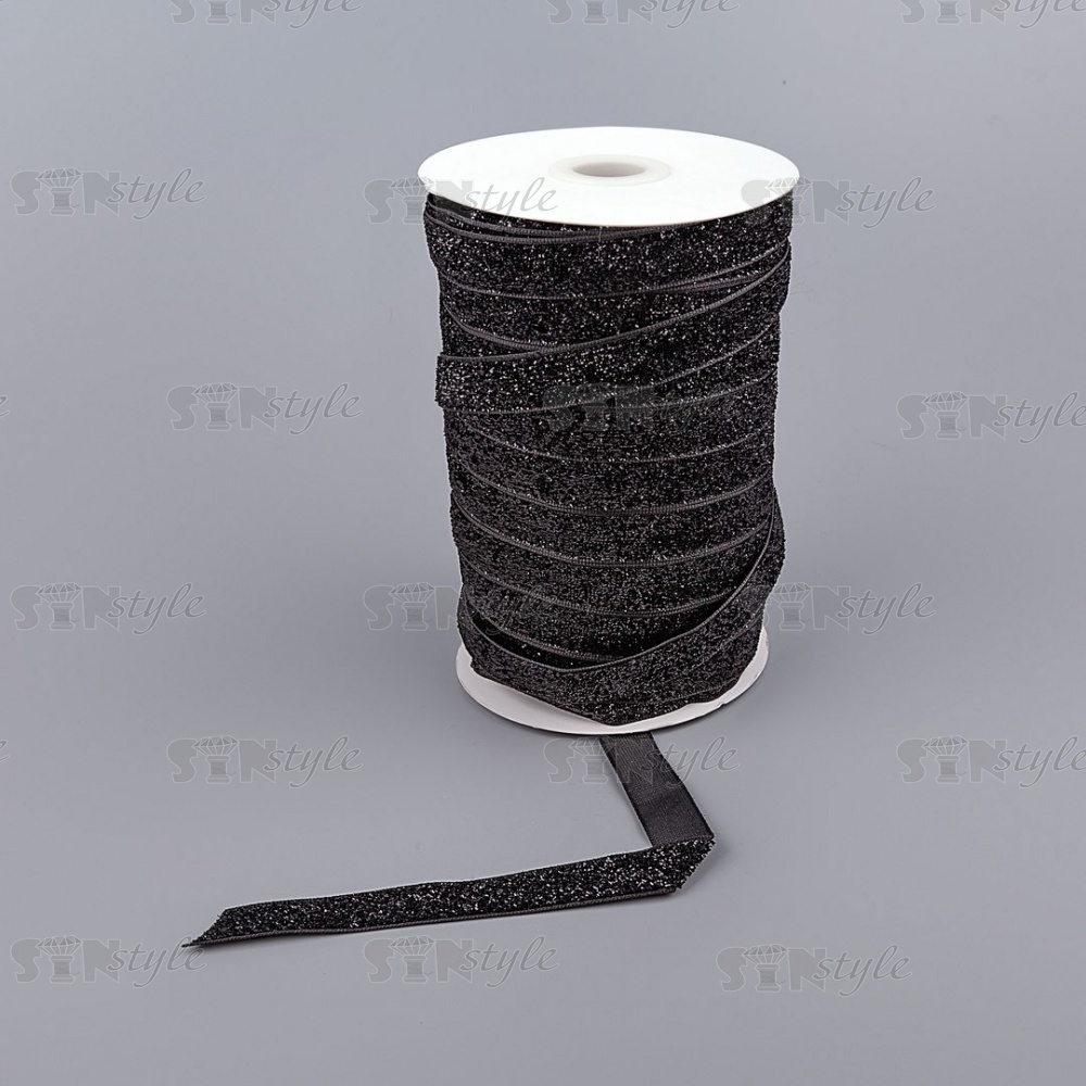 Декоративная лента бархатная, ширина 15 мм, намотка 50 ярдов,вет черный