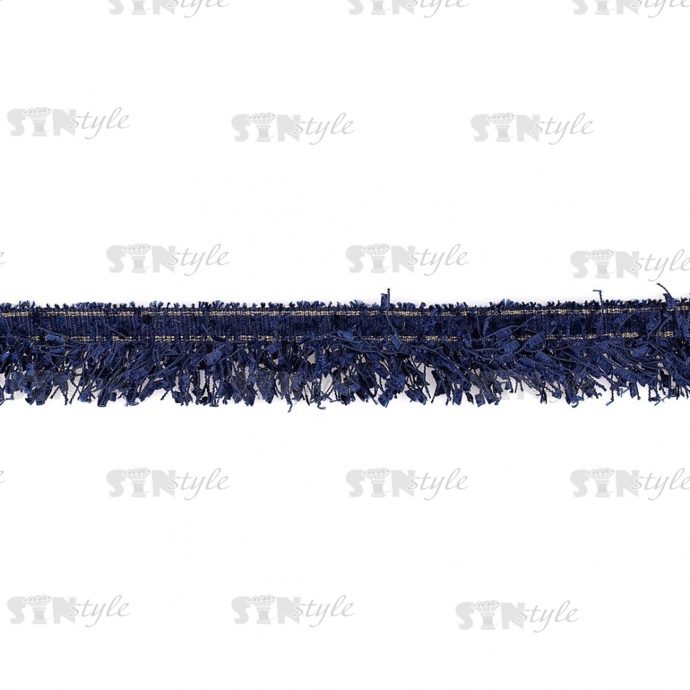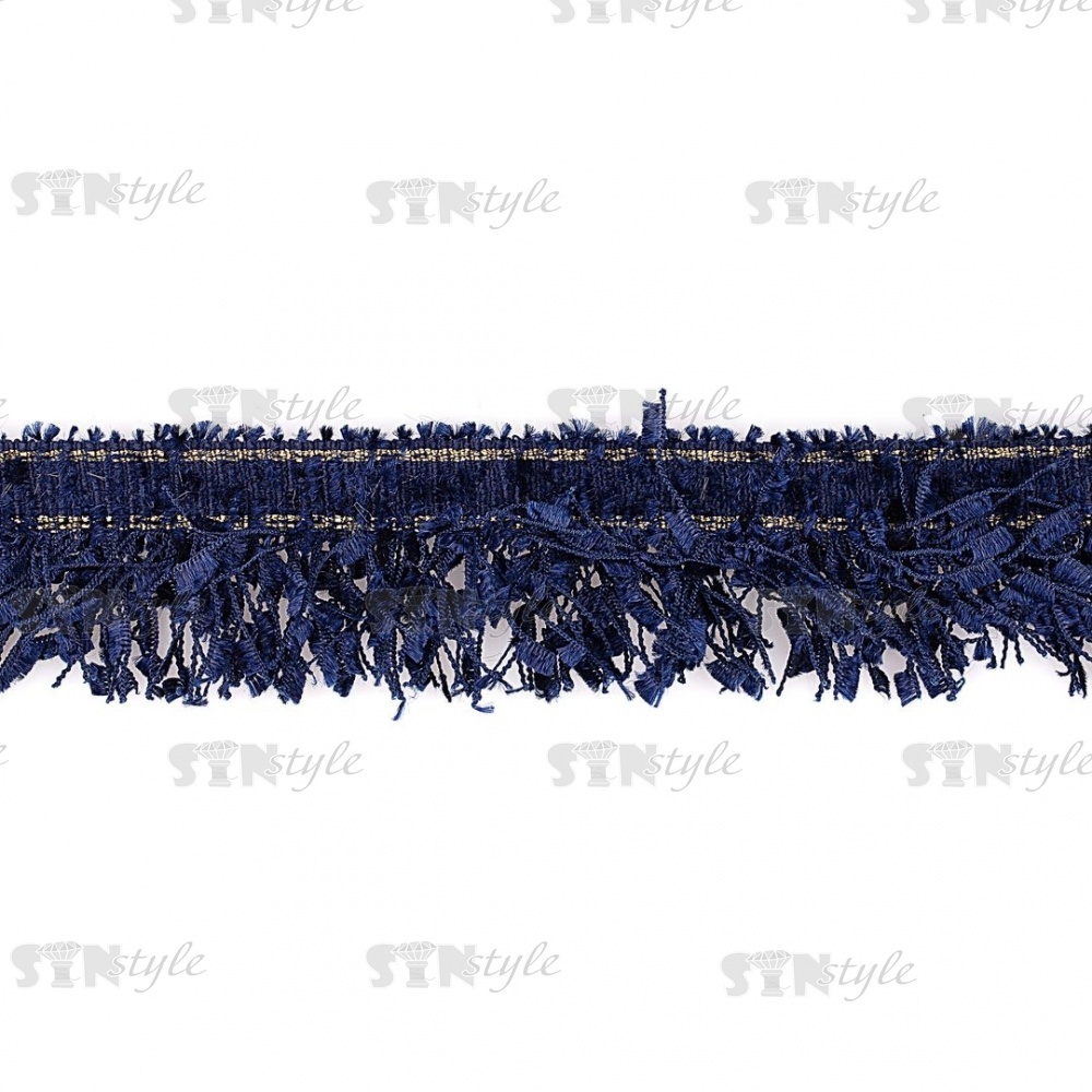 Декоративная тесьма букле с бахромой, отделана золотым люрексом, цвет темно-синий, ширина 35 мм, намотка 45 ярдов