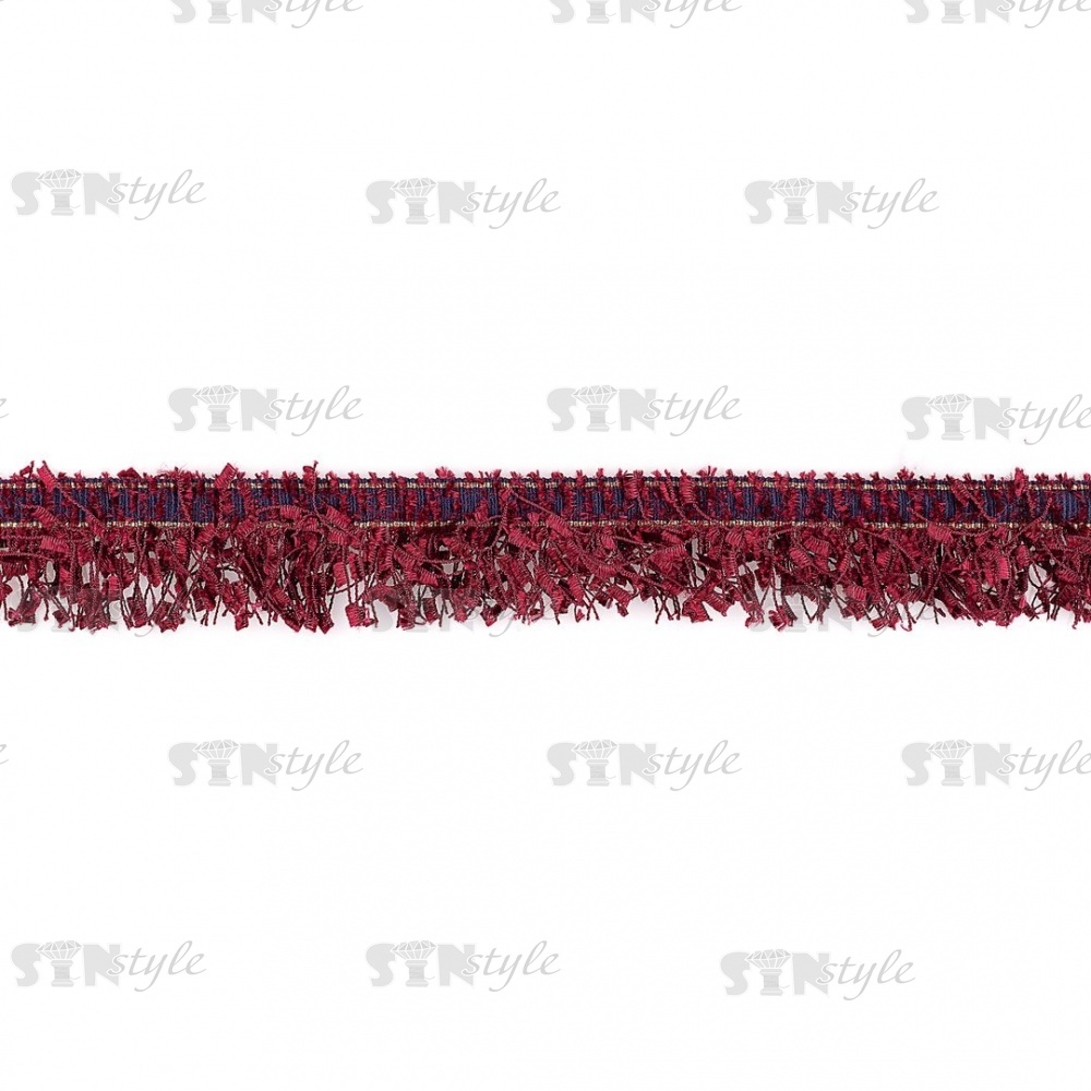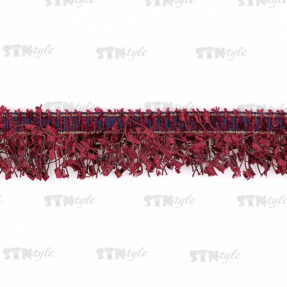 Декоративная тесьма букле с бахромой, отделана золотым люрексом, цвет бордовый, ширина 35 мм, намотка 45 ярдов