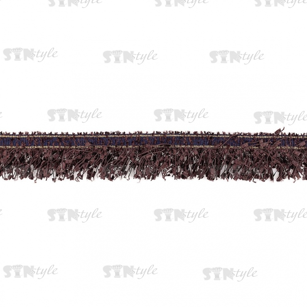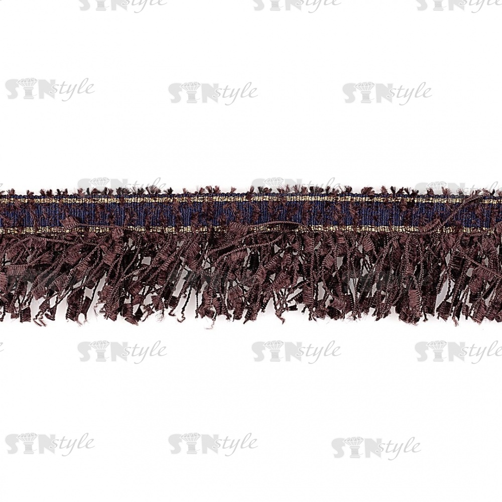 Декоративная тесьма букле с бахромой, отделана золотым люрексом, цвет кофейный, ширина 35 мм, намотка 45 ярдов