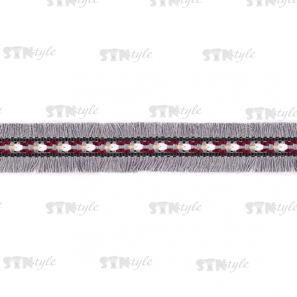 Декоративная тесьма букле с бахромой, цвет серый, ширина 25 мм, намотка 45 ярдов