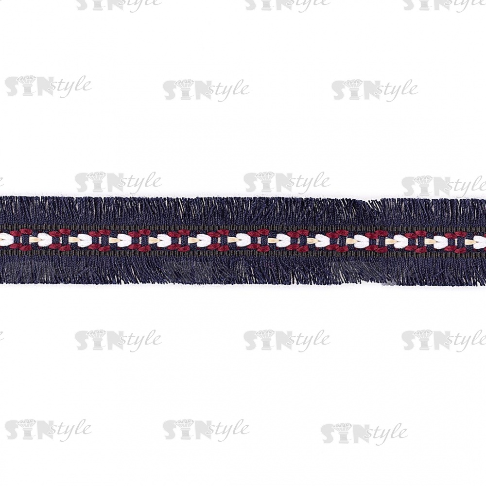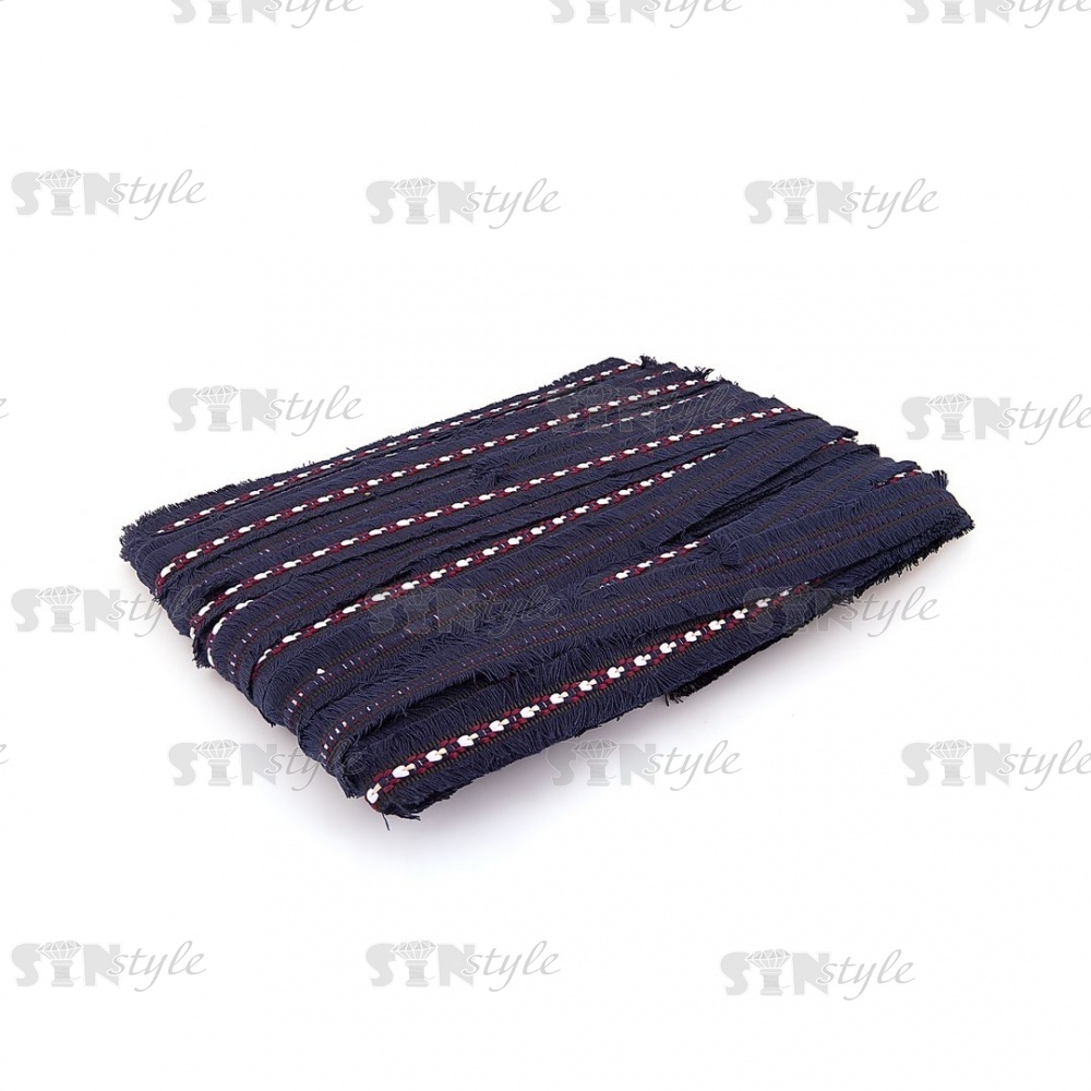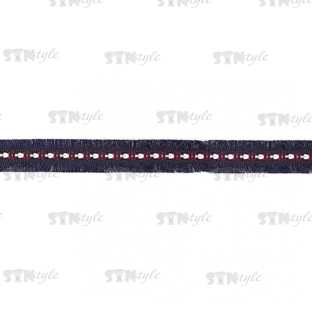 Декоративная тесьма букле с бахромой, цвет синий, ширина 25 мм, намотка 45 ярдов