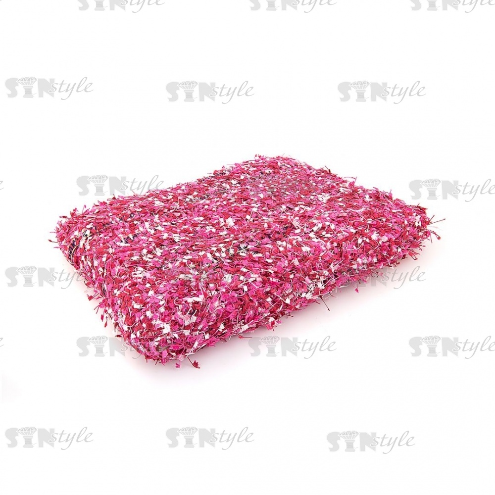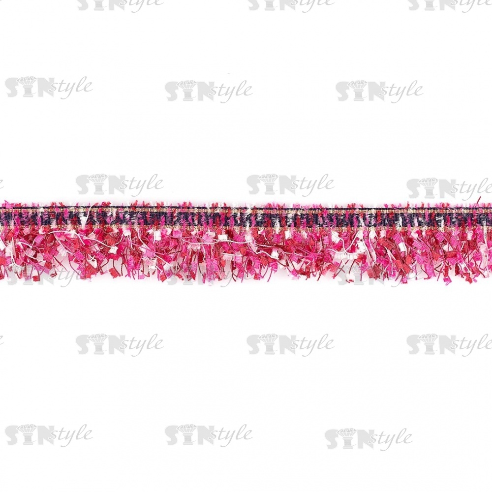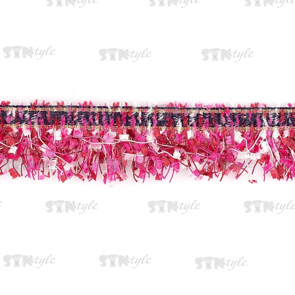 Декоративная тесьма букле с бахромой, отделана золотым люрексом, цвет фуксия, ширина 35 мм, намотка 45 ярдов