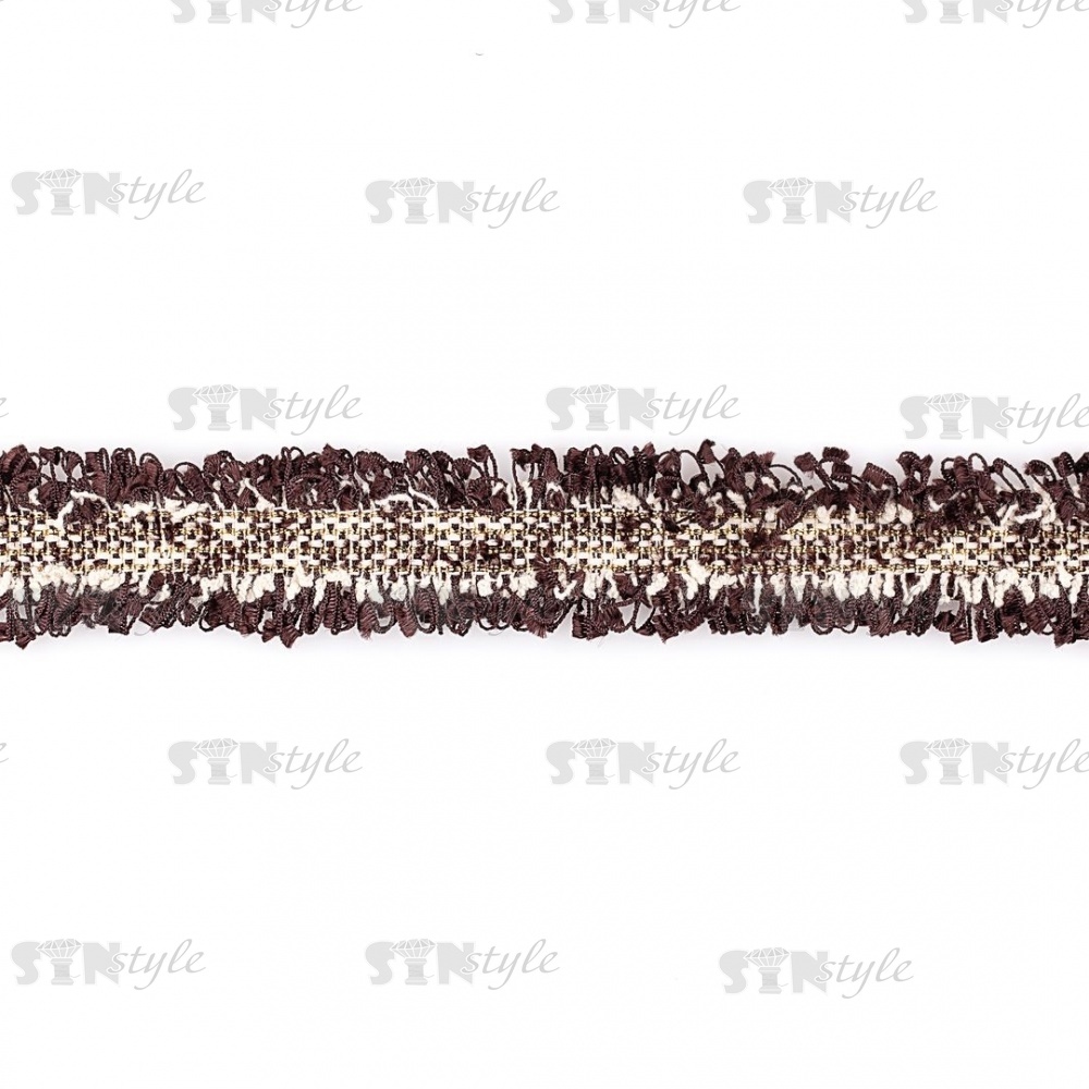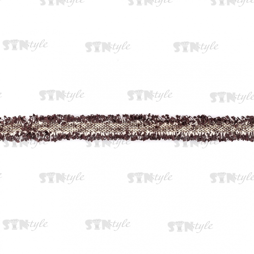 Декоративная тесьма букле с люрексом и бахромой, ширина 25 мм, цвет кофейный, намотка 45 ярдов