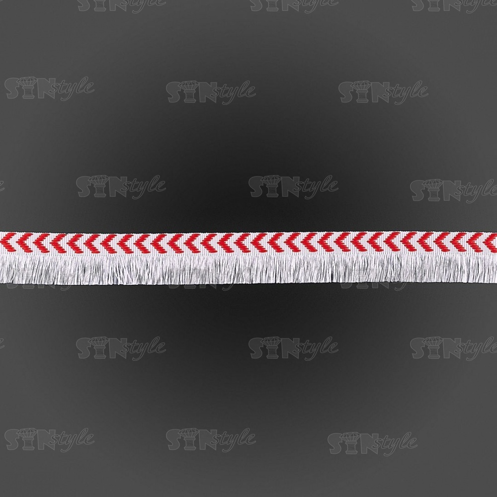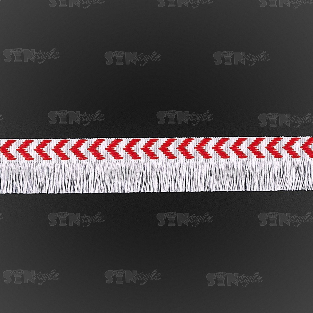 Декоративная тесьма букле с бахромой, цвет белый+красный, ширина 25 мм, намотка 45 ярдов
