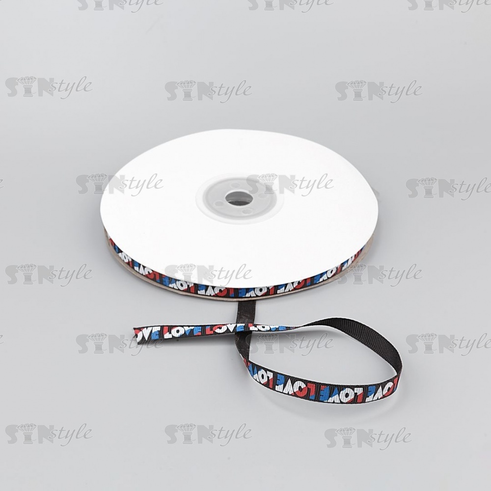 Лента репсовая, с принтом "LOVE", ширина 10 мм, цвет черный, намотка 100 ярдов