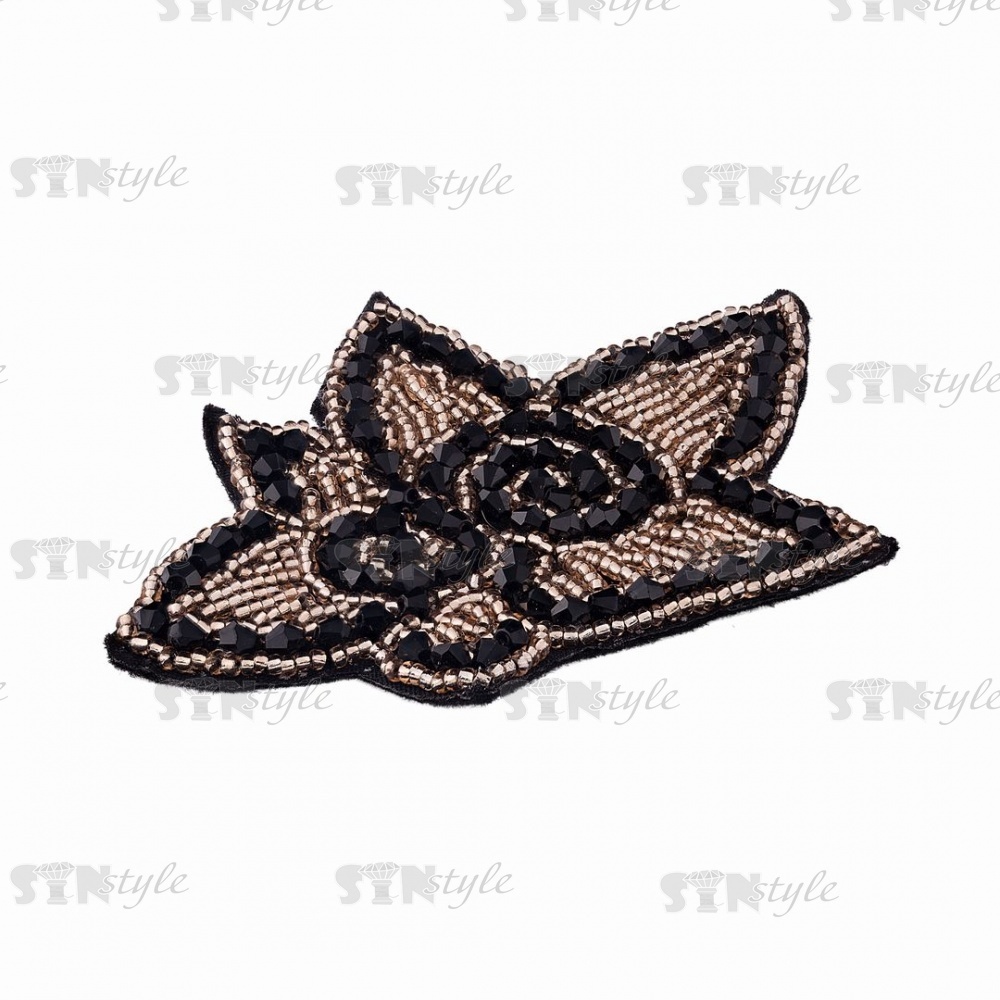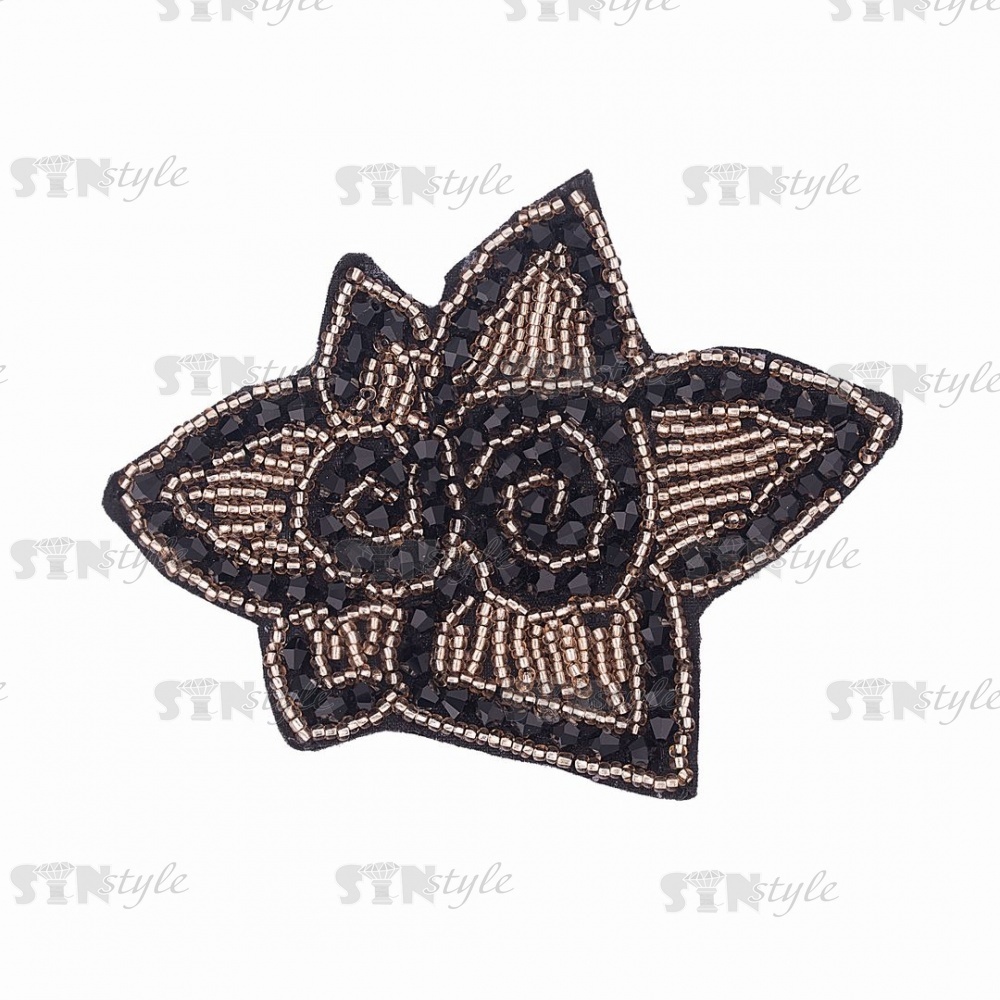 Аппликация с элементами из бисера, черный с золотом, размер 105х92 мм